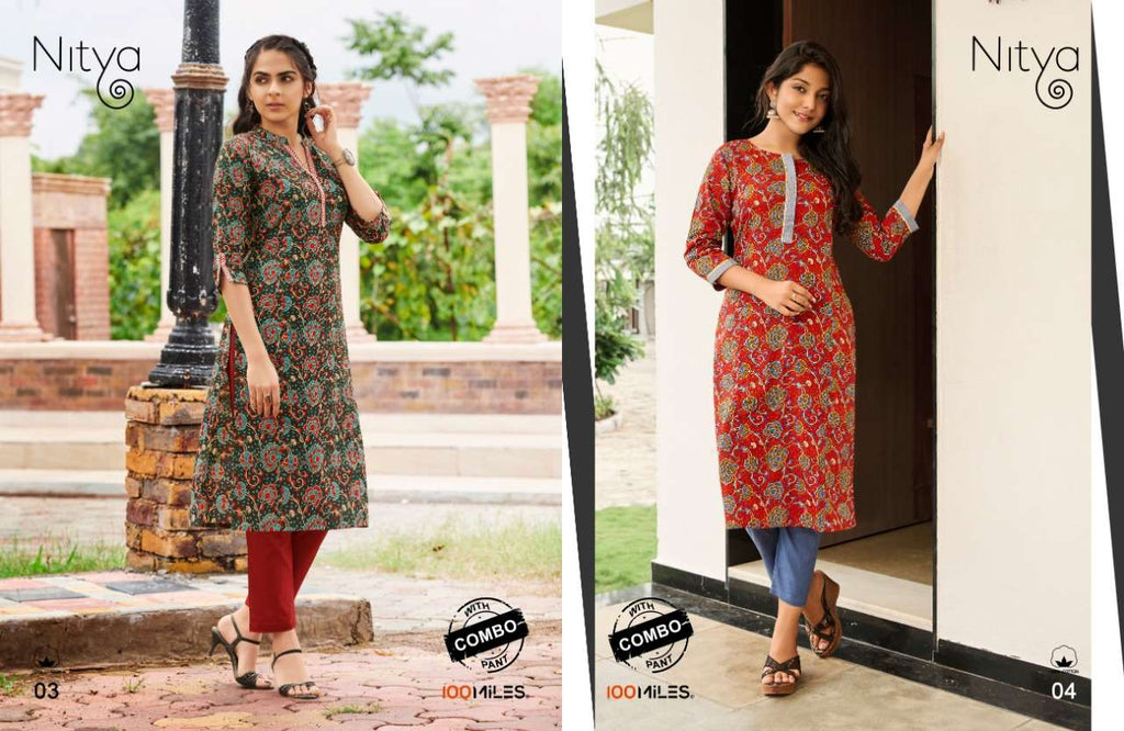 TYPE : Pure cotton printed Kurti with embroidery detailing and combo pure cotton pants. |