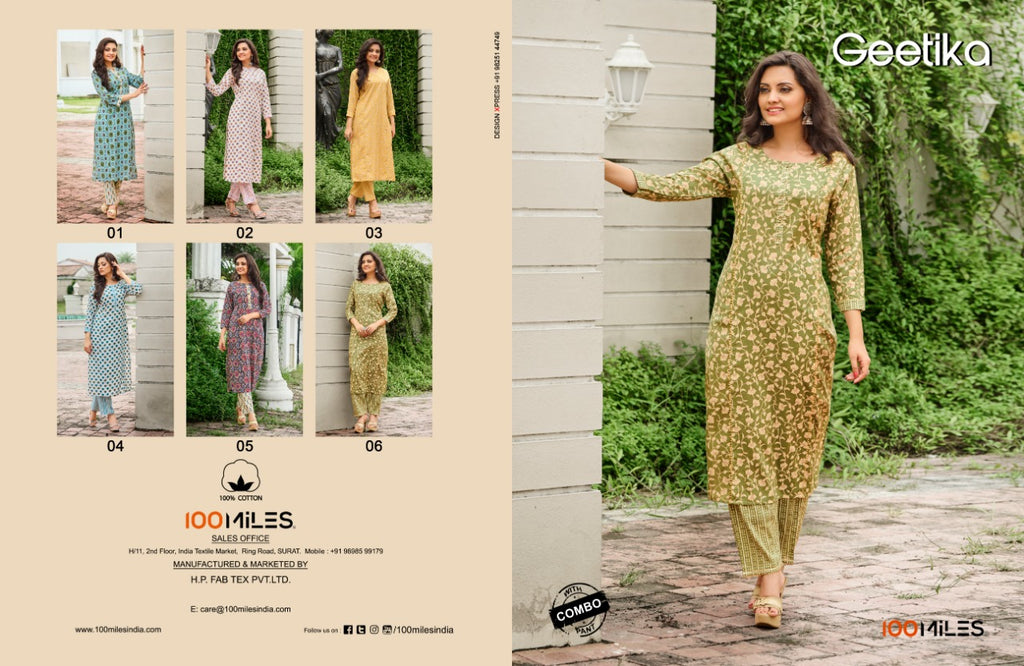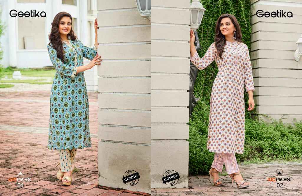 100 Miles Geetika Cotton Printed With Lace Pure Cotton Kurti
