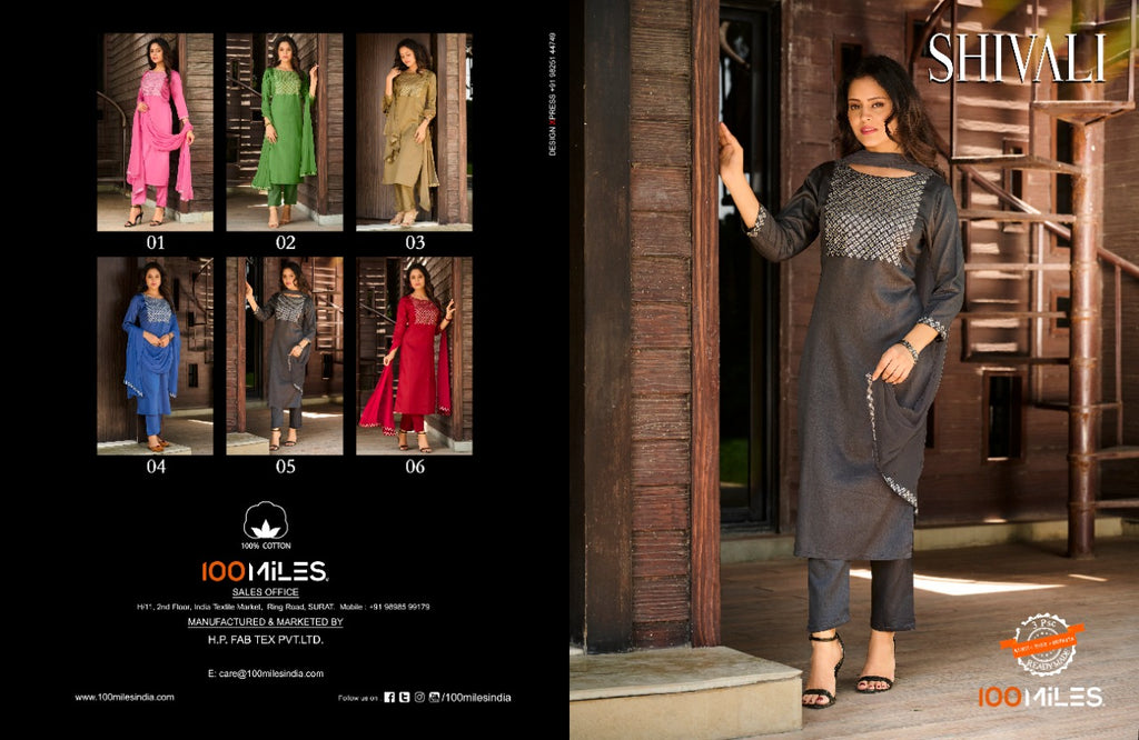 100 Miles Shivali Cotton Satin Fancy party Wear Kurtis With Bottom & Dupatta