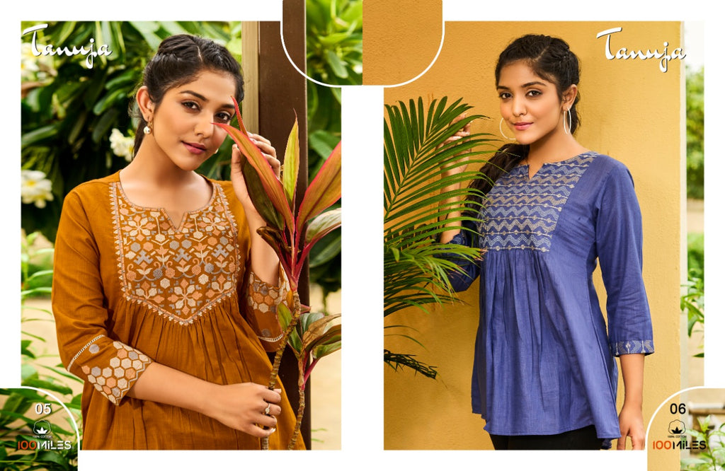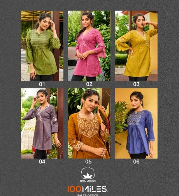 100 Miles Tanuja Pure Cottonshort Kurtis with heavy embroidery and fancy detailing.