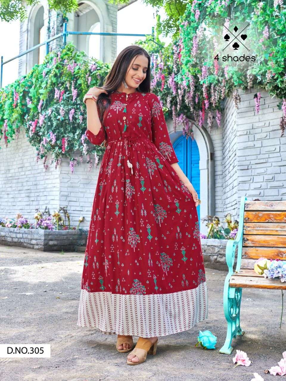 4 Shades Sundari Vol 3 Rayon Designer Printed Gown Stylish Kurti