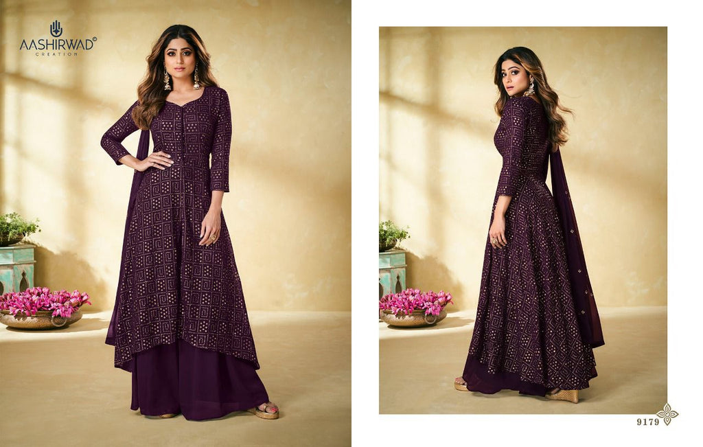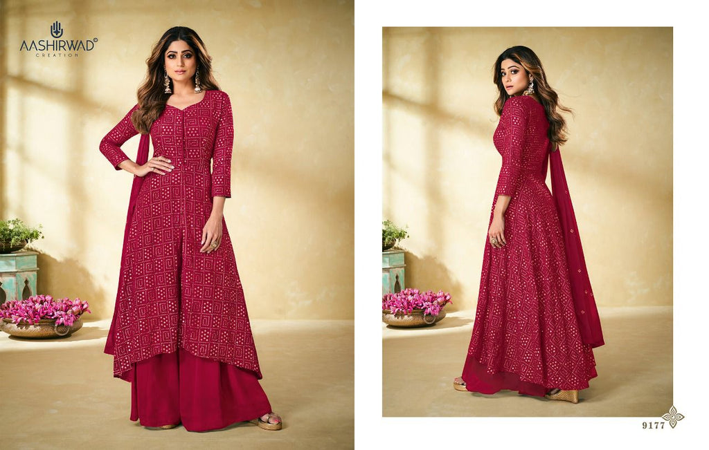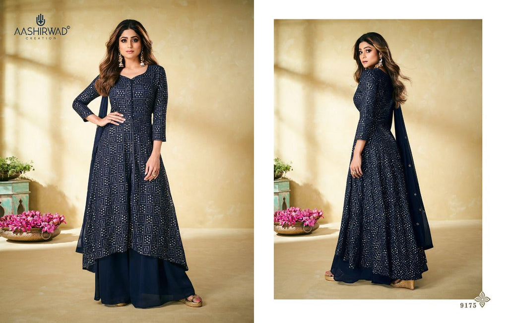 Aashirwad Creation Ethnic Real Georgette Heavy Designer Ready Made Suits