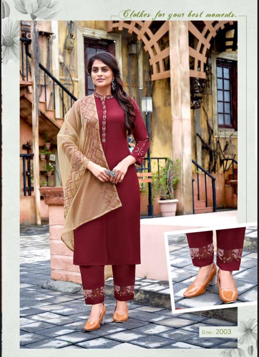 Fabric Details Fabric- Chinnon With Embroidery Work Dupatta: Fully Stitched Kurtis & Pant With Dupatta Size: M, L, XL, XXL |