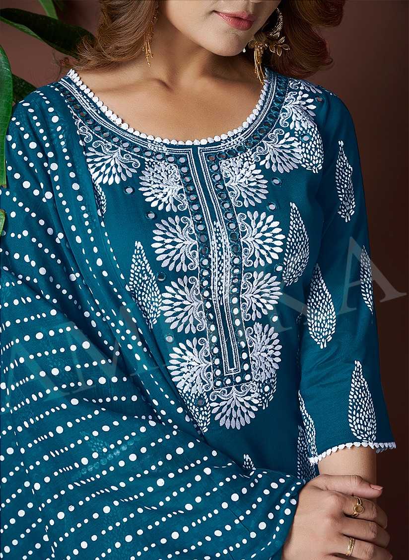 Top Fabrics : *Printed Rayon 14 kg with less🍇🍇 Work : *Neck with mirror work and less on neck & 3 side on daman |