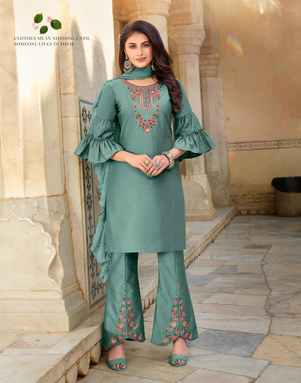 Fabric Details : Top : Bamber Silk Bottom : Exclusive Satin Dupatta : Chinon Work Type : Double Sequence Embroidery Size – M,L,XL,XXL,3XL |