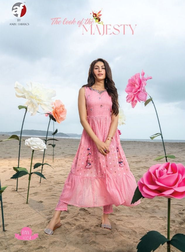 Anju Fabrics Majesty Pure Cotton Mirror With Heavy Hand Work Stylish Designer Party Wear Fancy Kurti