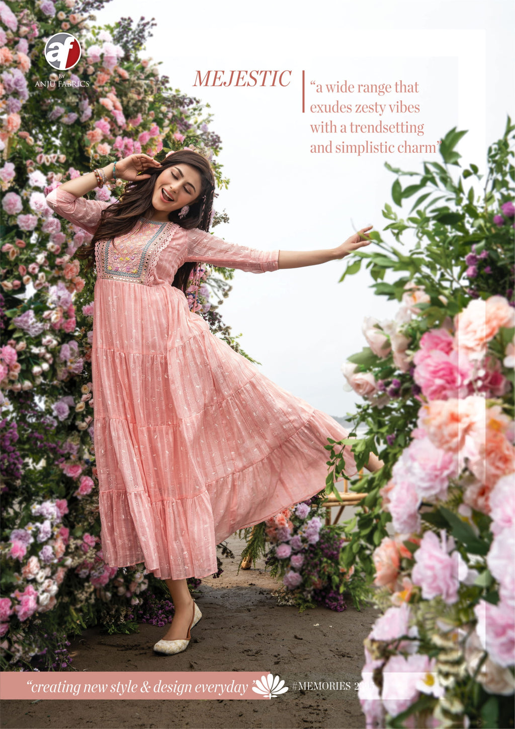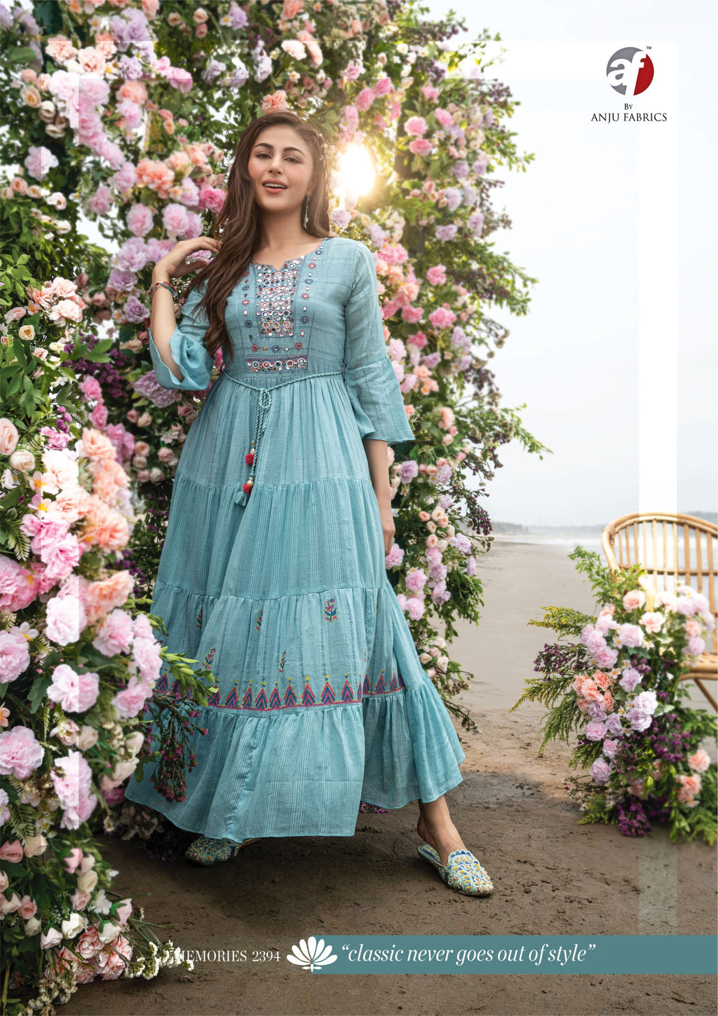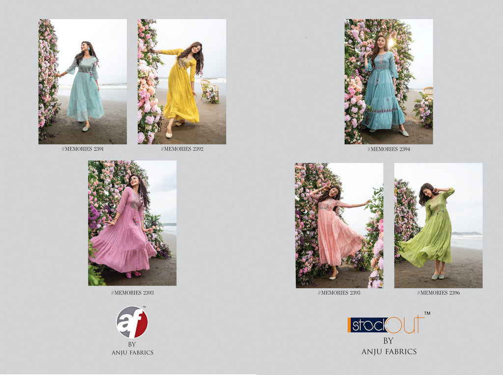 Anju Fabrics Memories Vol 2 Mul Cotton Designer Party Wear Gown Style Embroidered Kurtis