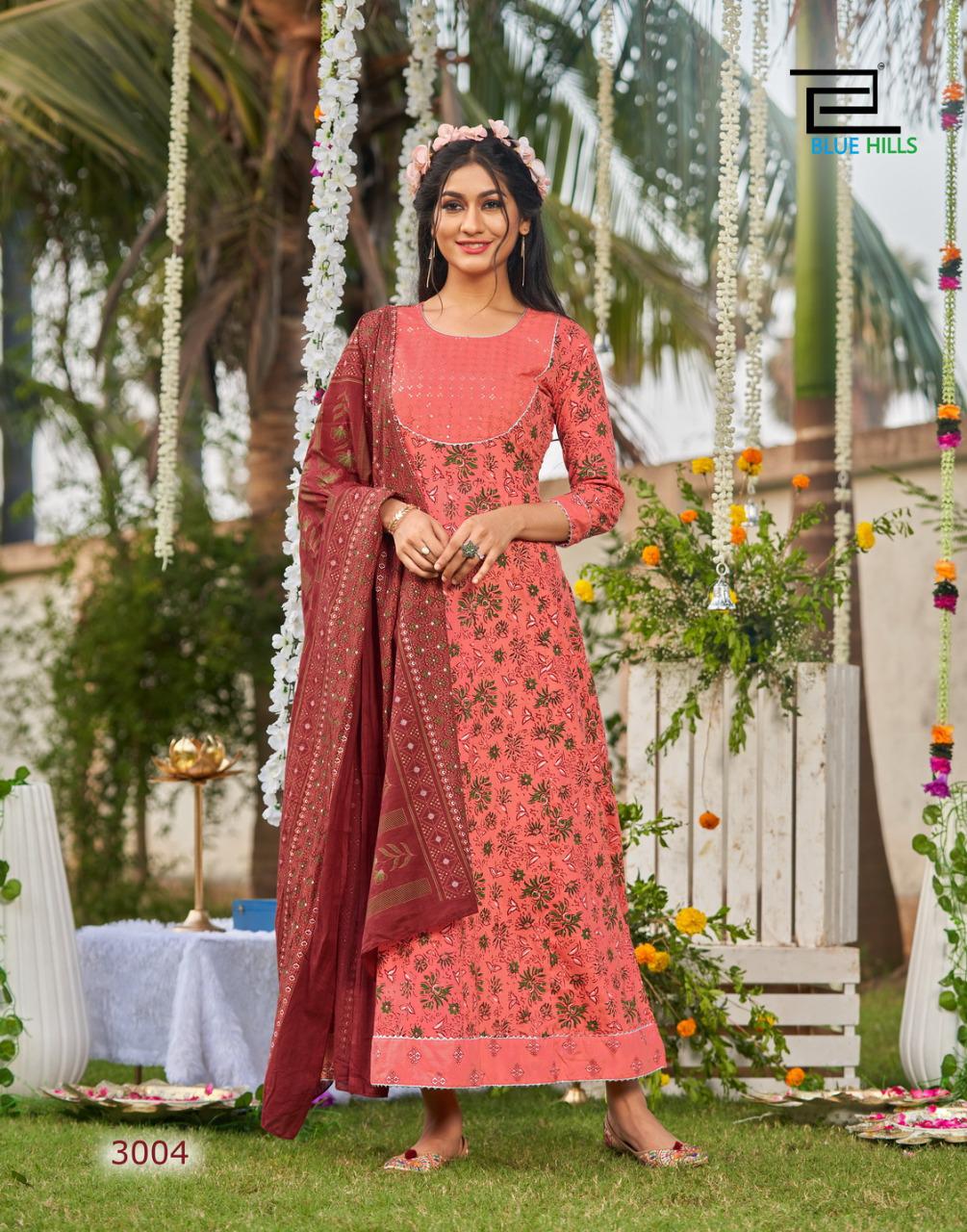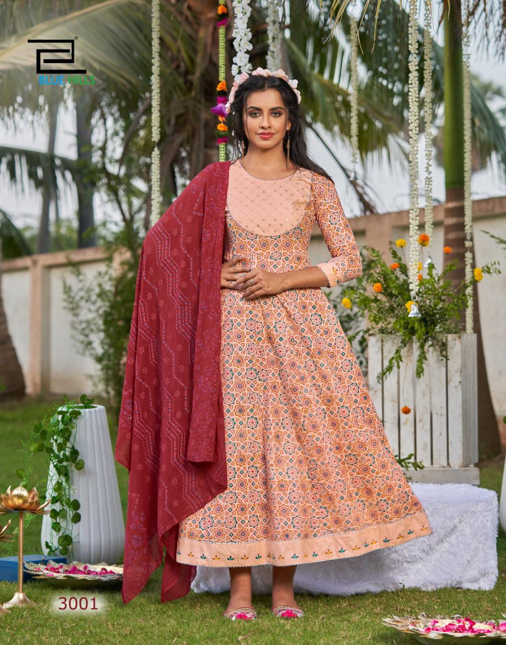 Blue Hills Ada Vol 3 Cambric Cotton Anarkali Style Long Party Wear Kurtis With Dupatta