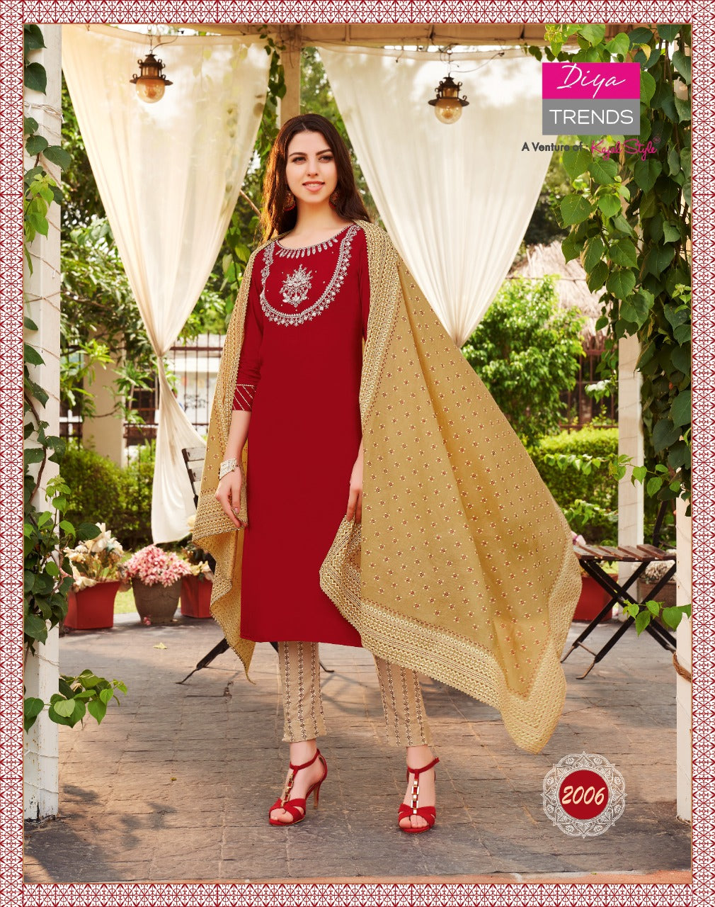 DIYA TRENDS Catalogue name:- ODHANI VOL 2 KURTI WITH PANT& DUPATTA(3 PCS) Details |