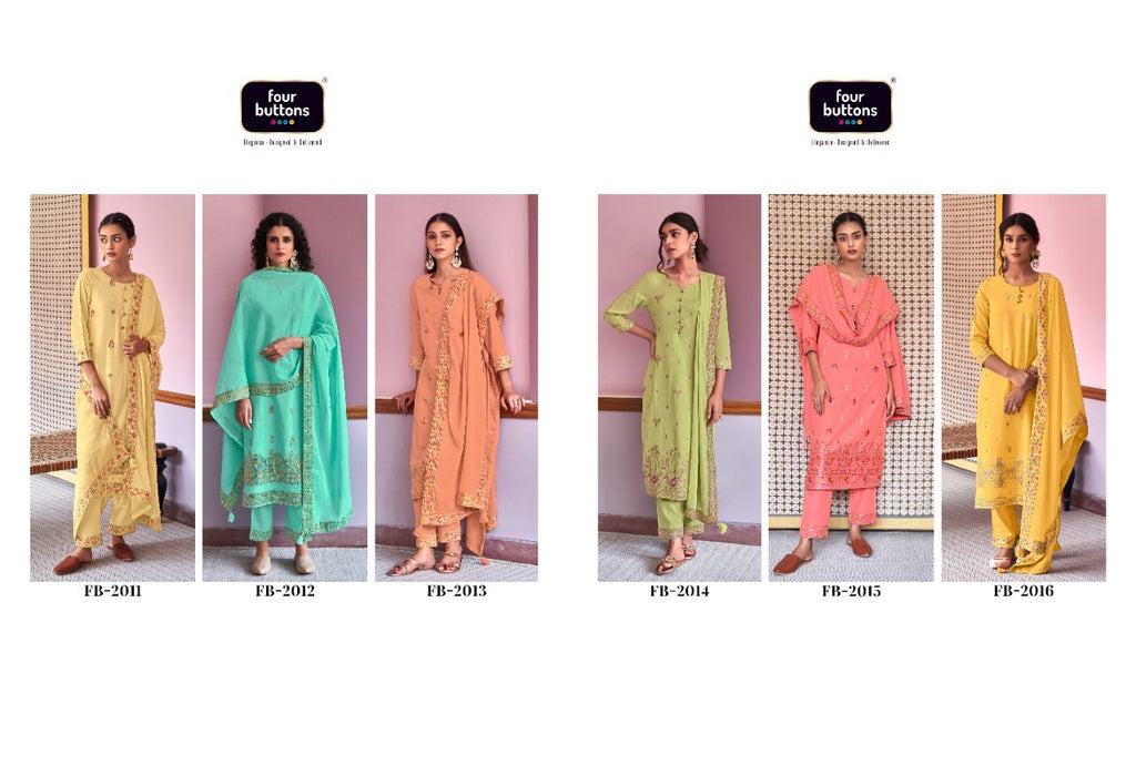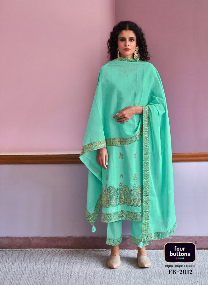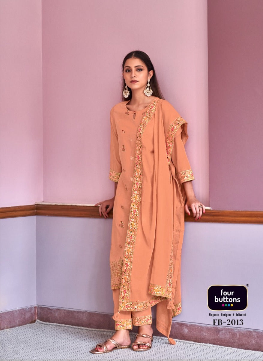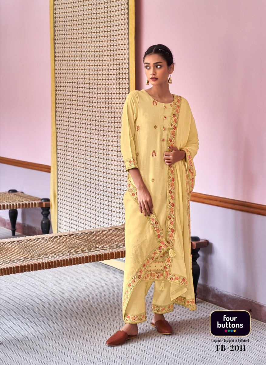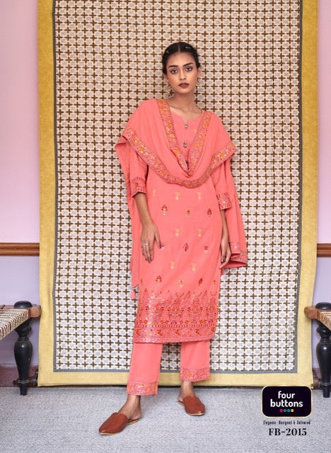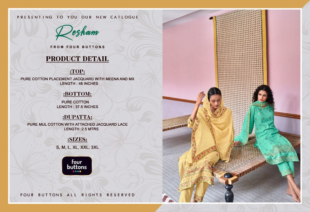 Four Button Resham Pure Cotton With Heavy Embroidery Work Stylish Designer Casual Wear Kurti