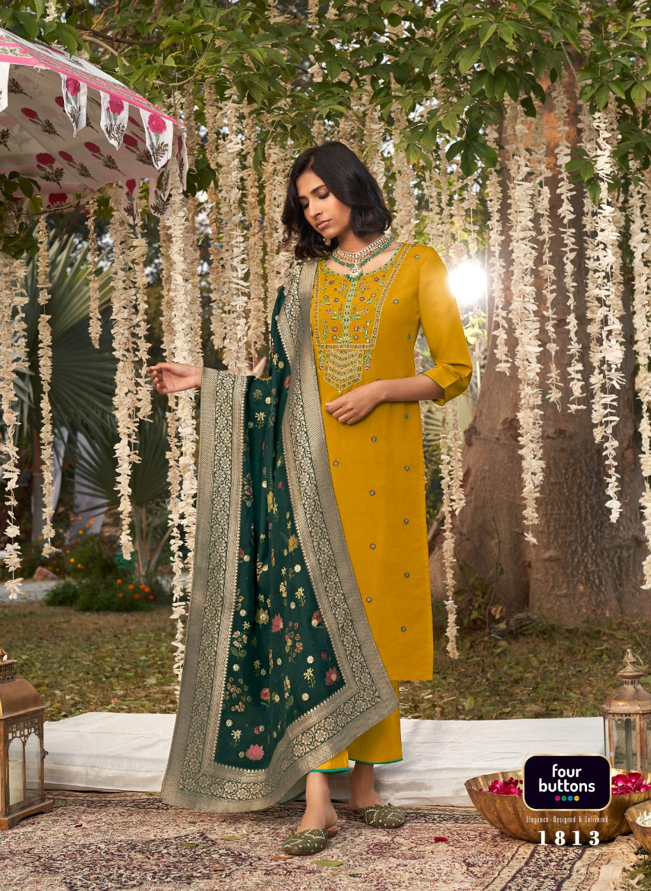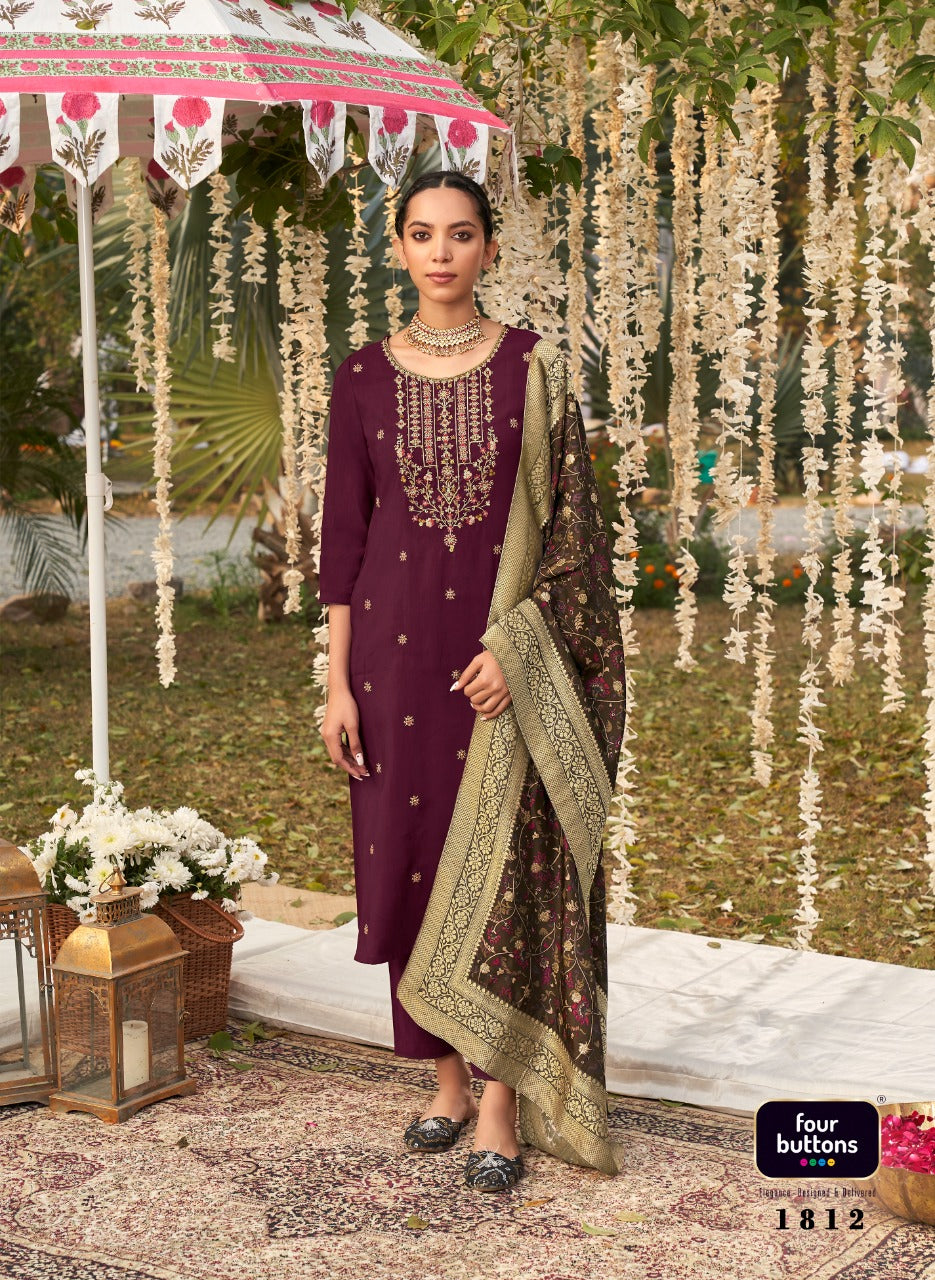 Four Buttons Kalamkari Viscose Silk Designer Heavy Party Wear Kurtis With Dupatta & Bottom