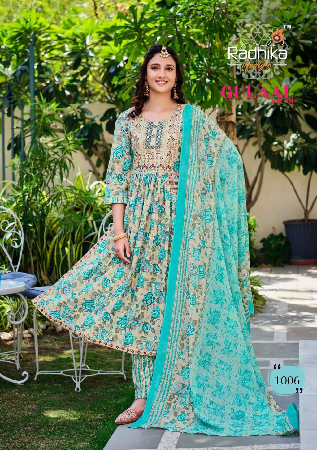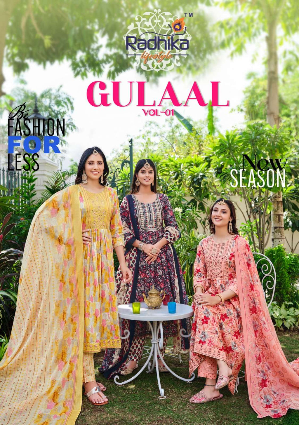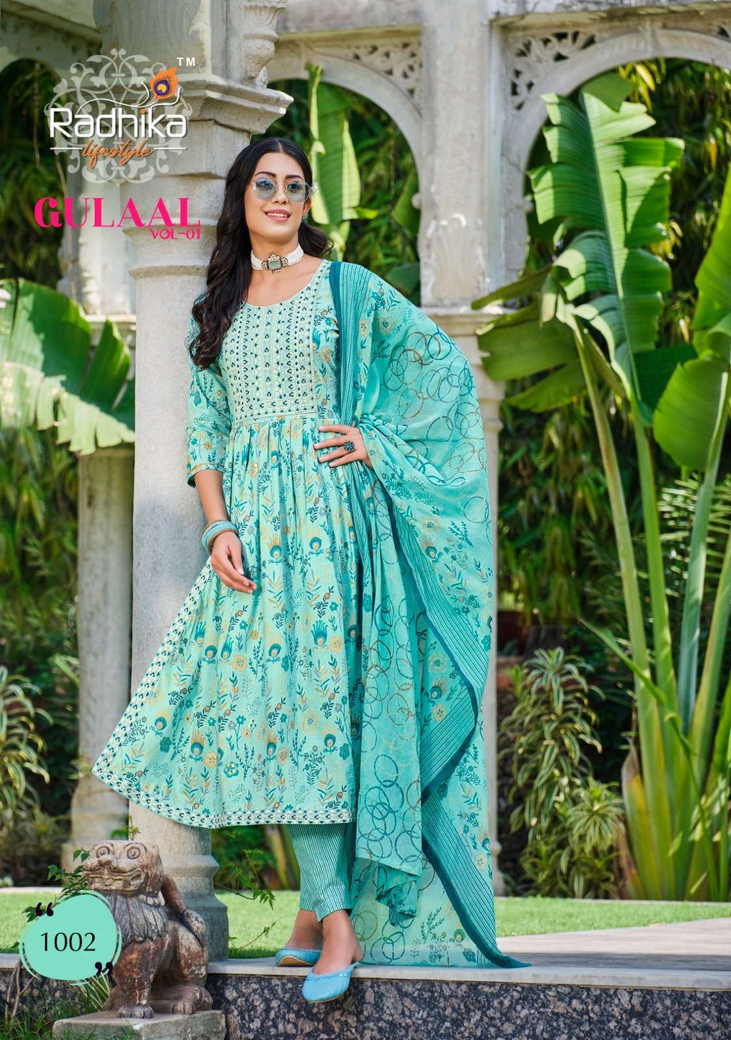 Gulaal Vol 1 By Radhika Lifestyle Nayra Cut Kurti With Printed Pant And Dupatta