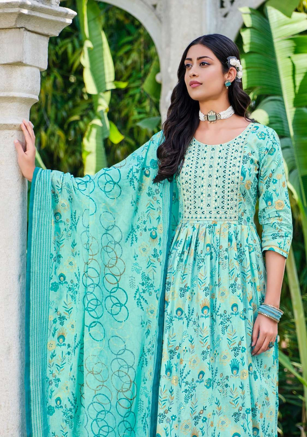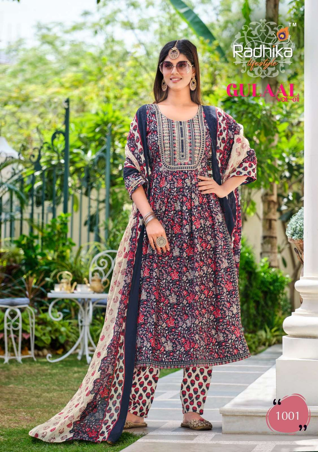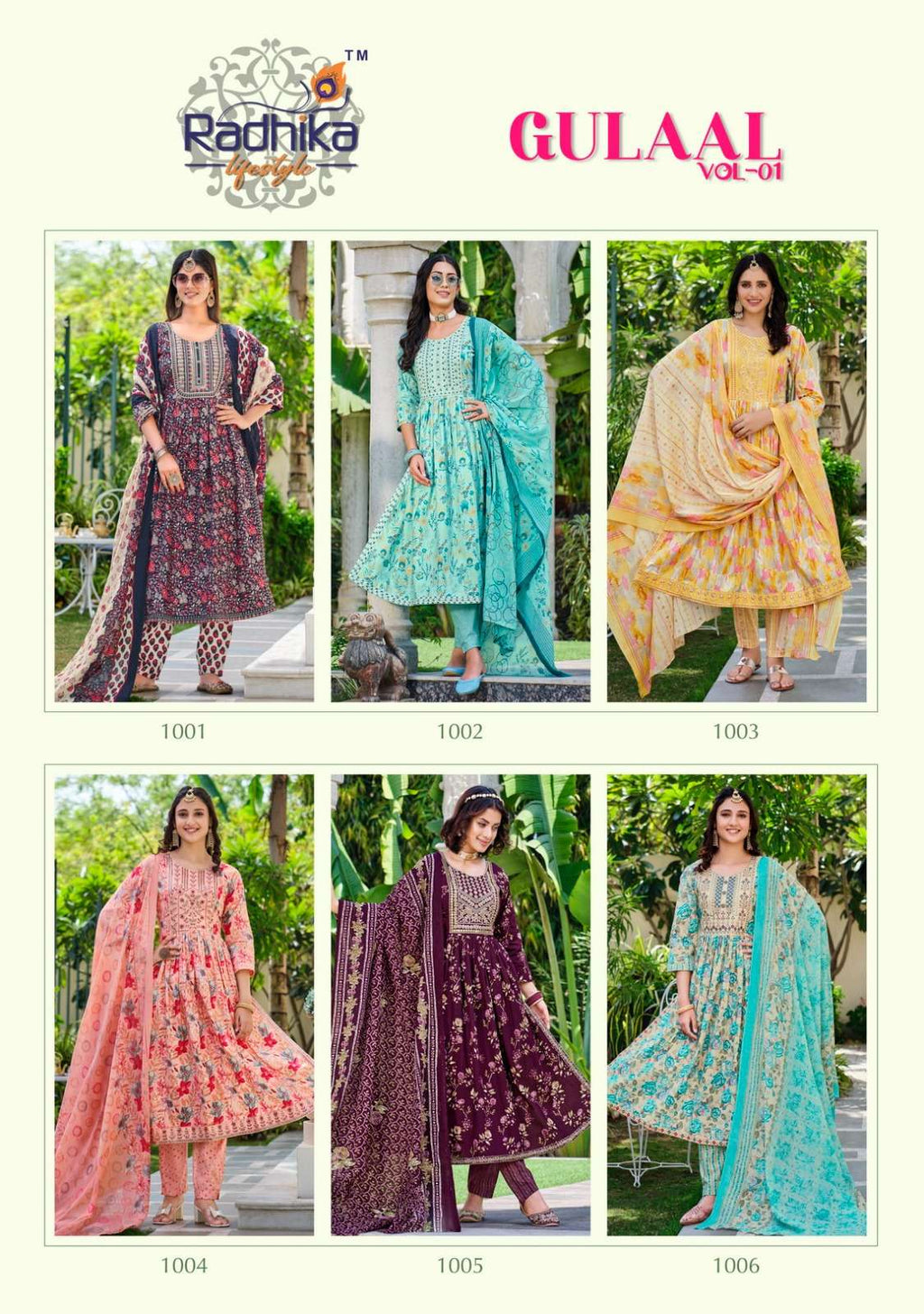 Gulaal Vol 1 By Radhika Lifestyle Nayra Cut Kurti With Printed Pant And Dupatta
