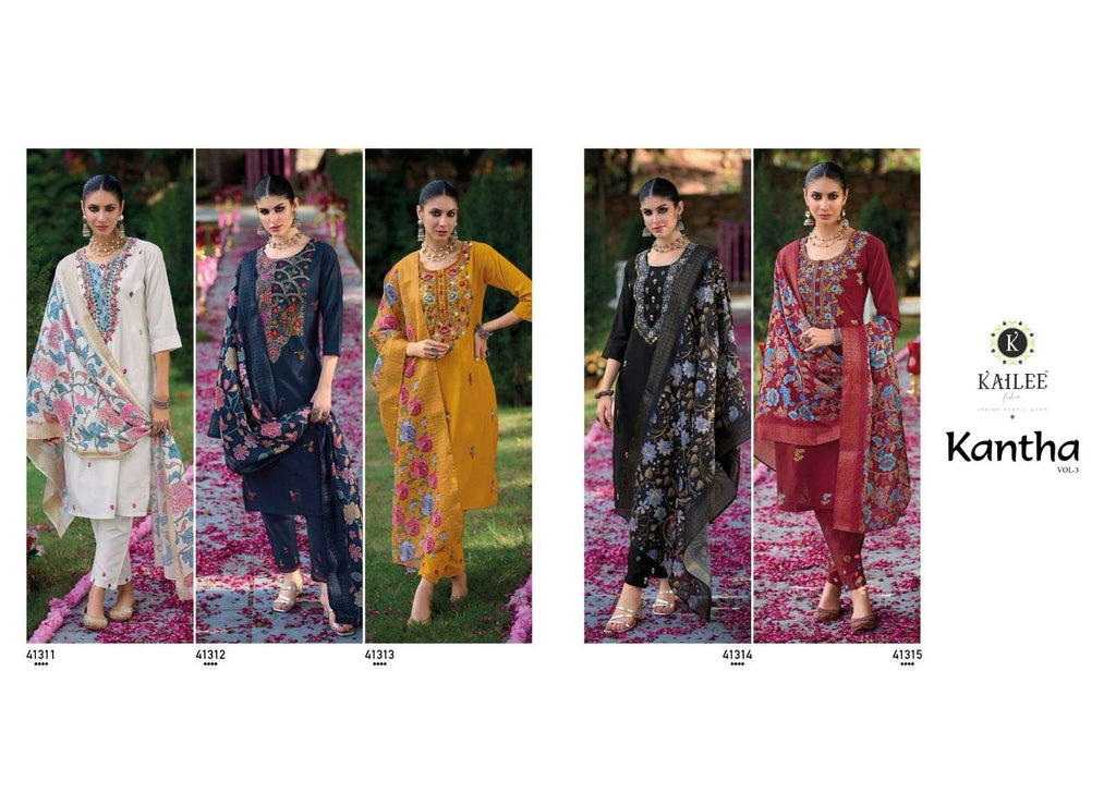 Kailee Fashion Kantha Vol 3 Viscose Silk With Handwork Printed Kurti Bottom Dupatta