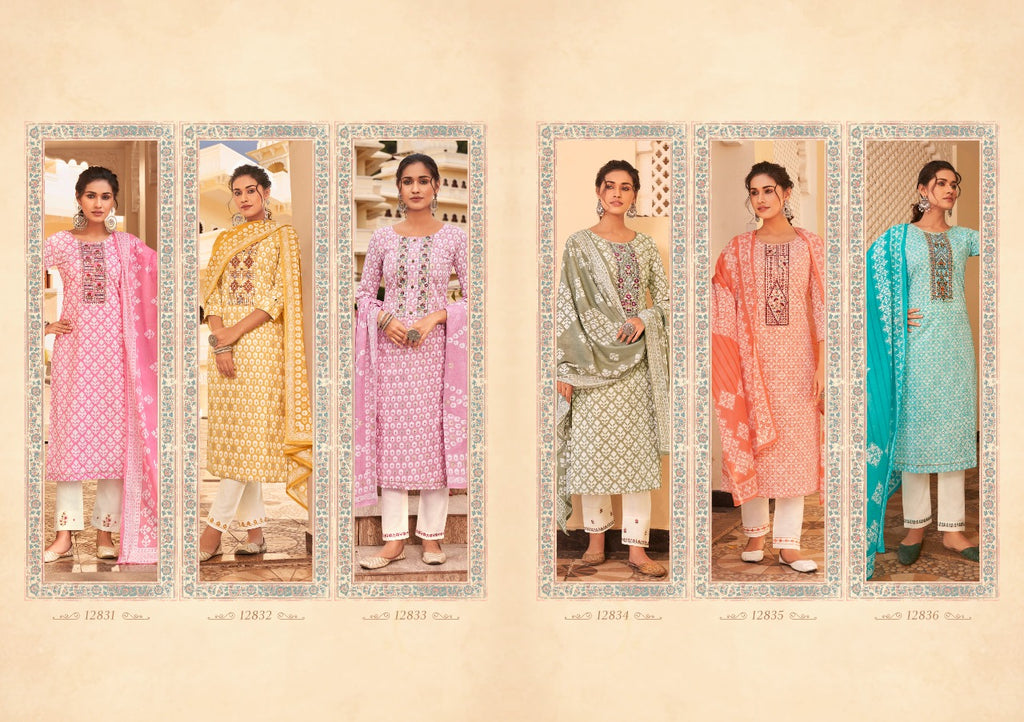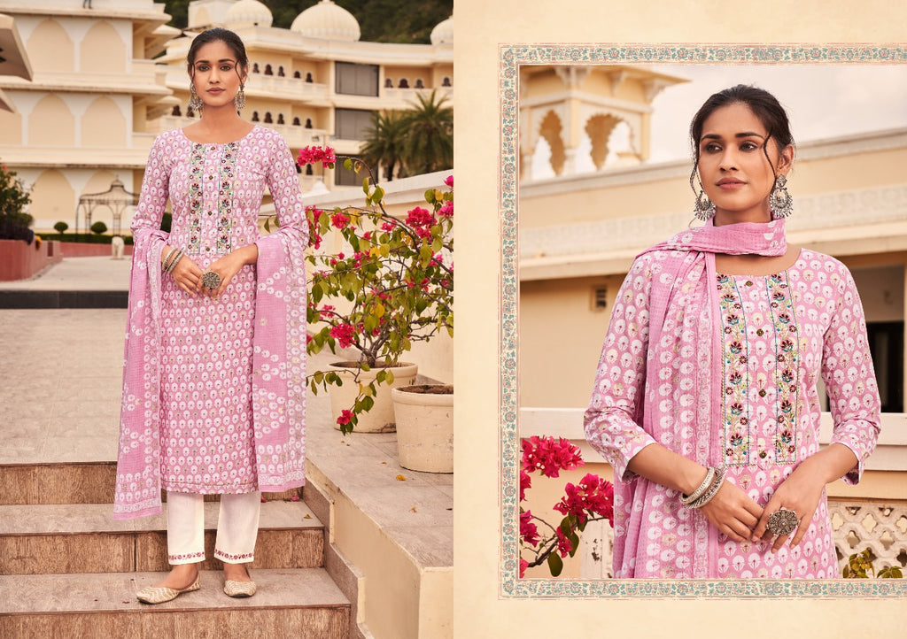 Fabric Details Top:- Cambric Cotton With Foil Print & Neck Work Pent :- Rayon Flex With Work Dupatta:- Mal Dupatta With Foil Print Total Design:- 06 Size:- M, L, XL, XXL. |