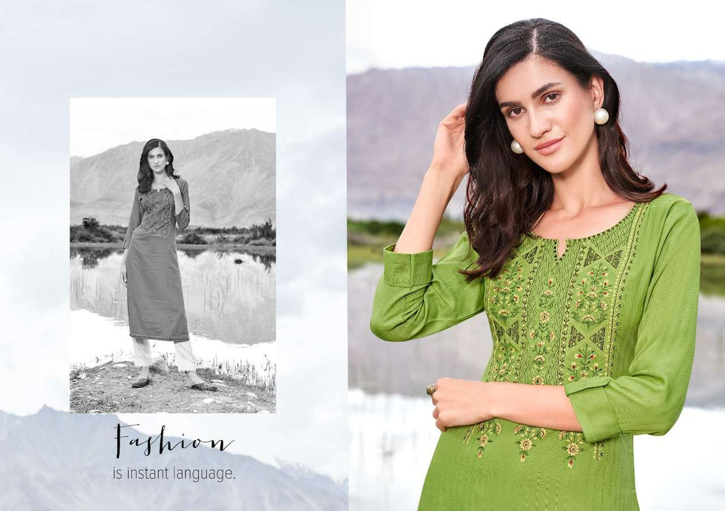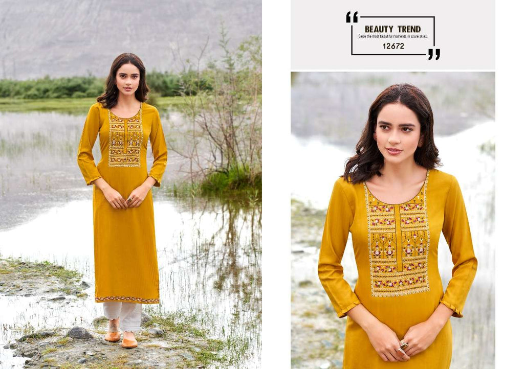Kalaroop Presents By Beat Rayon With Embroidery Work Fancy Formal Wear Designer Kurtis