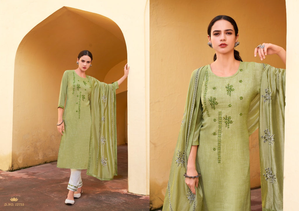 Kivi By Kalaroop Present Aangan Fancy Fabric With Embroidery Work Kurti