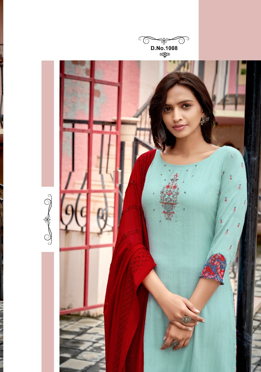 Top:- Pure Nylon Viscose With Stripe Bottom :- Cotton Slub Lycra With Embroidery Work Dupatta :- Pure Nylon Viscose Weaving |