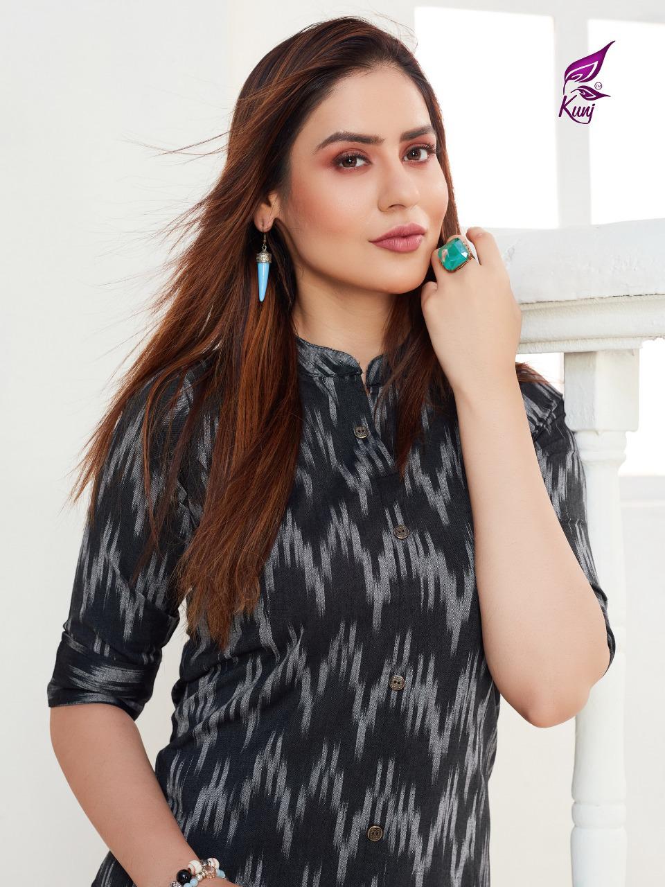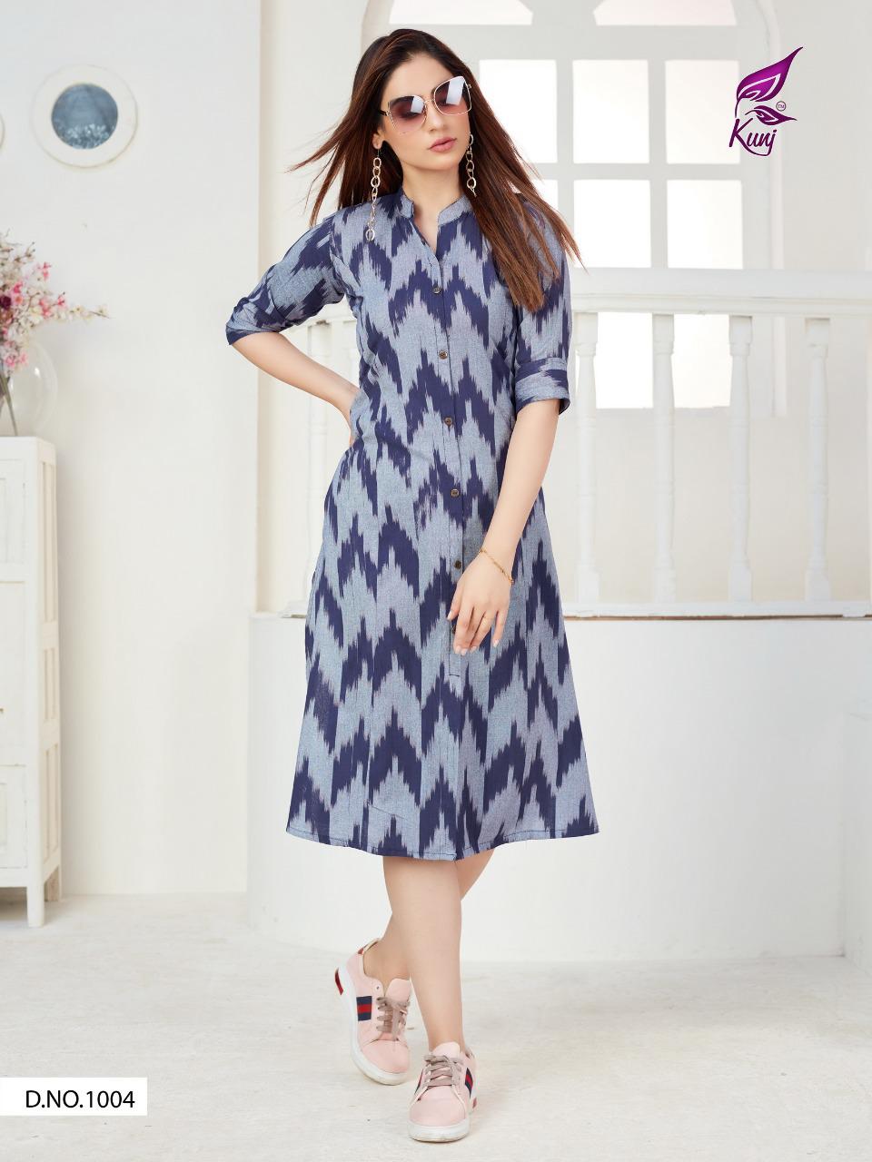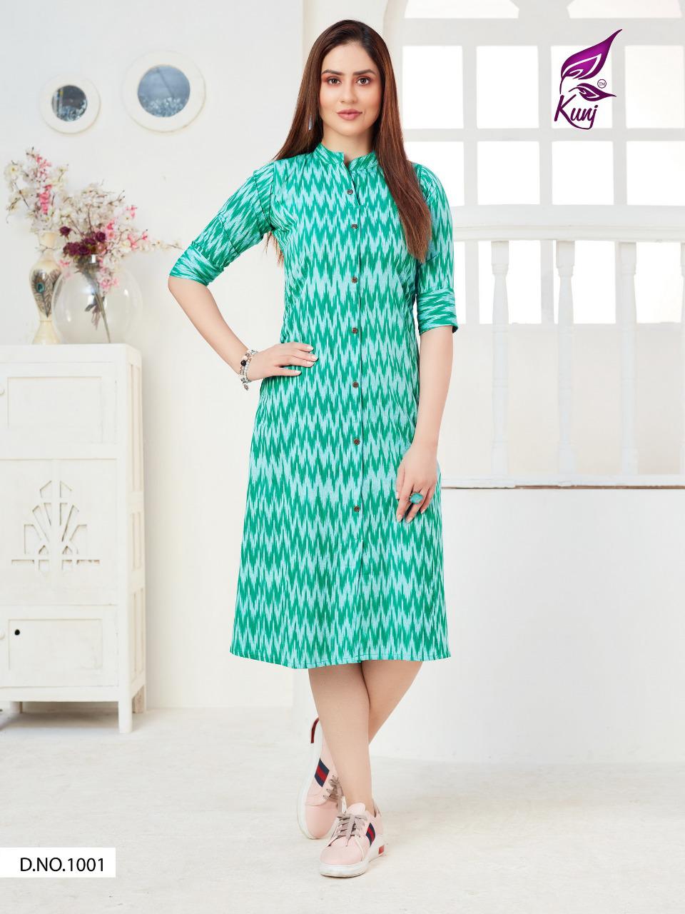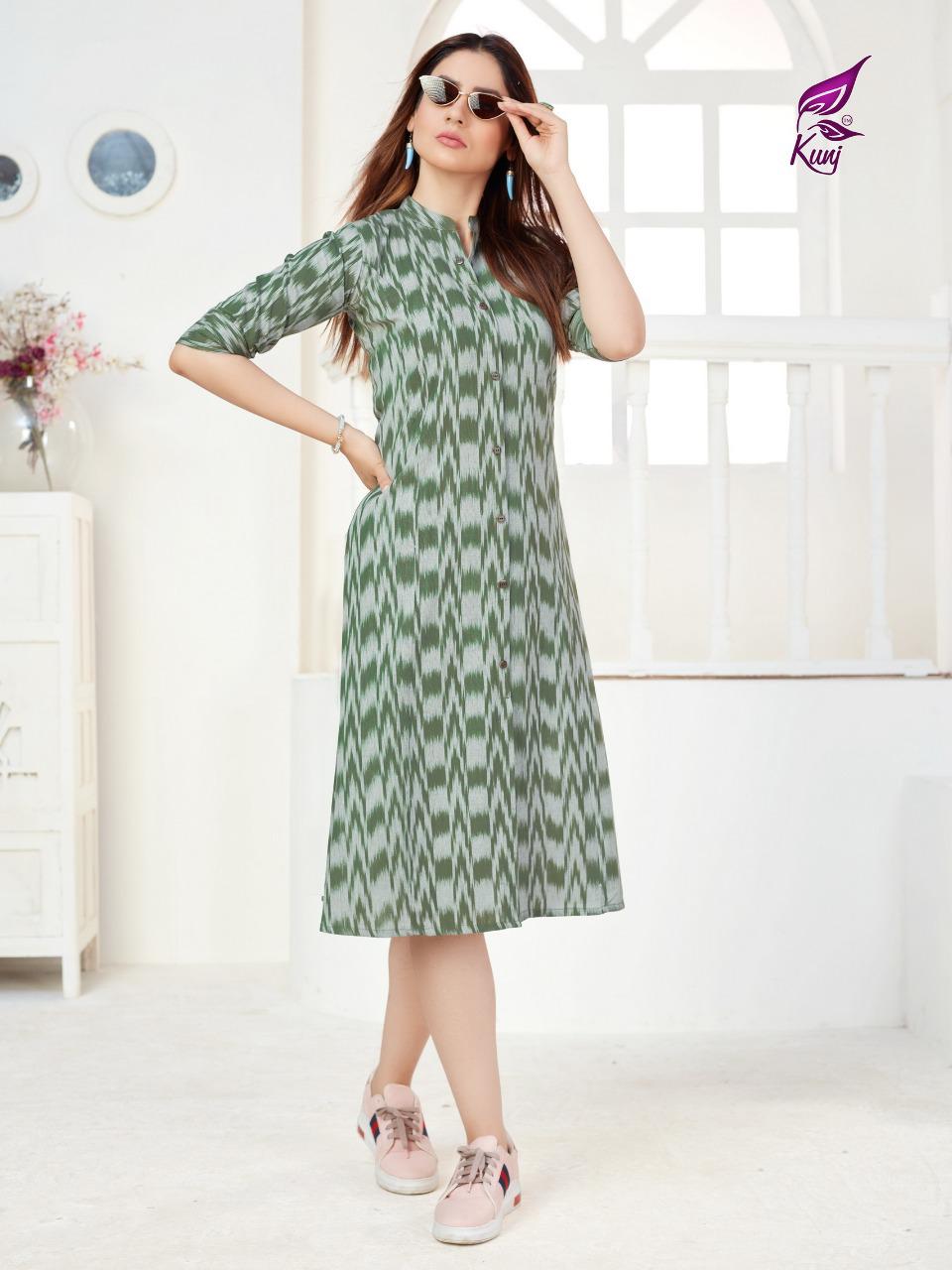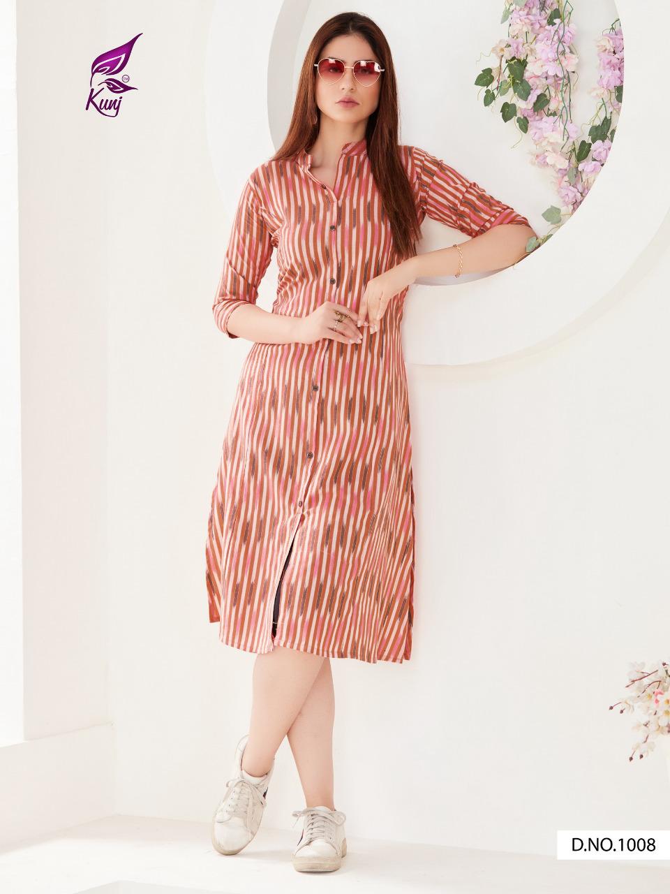 Kunj Rayon Ikki Vol 10 Rayon Ikkat Printed Long Fancy Formal Wear Exclusive Deisgner Kurtis