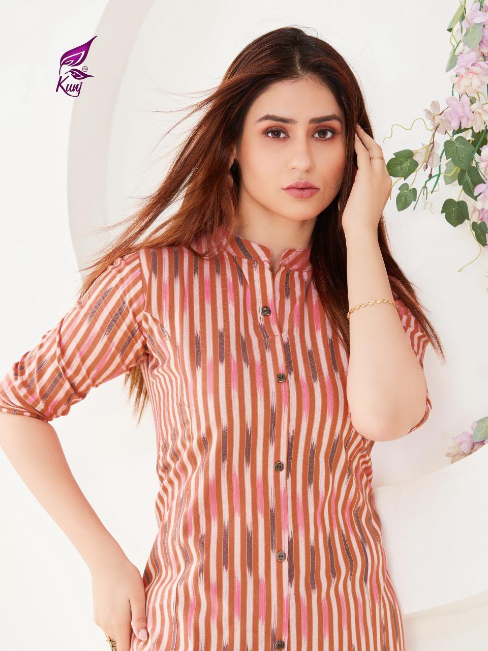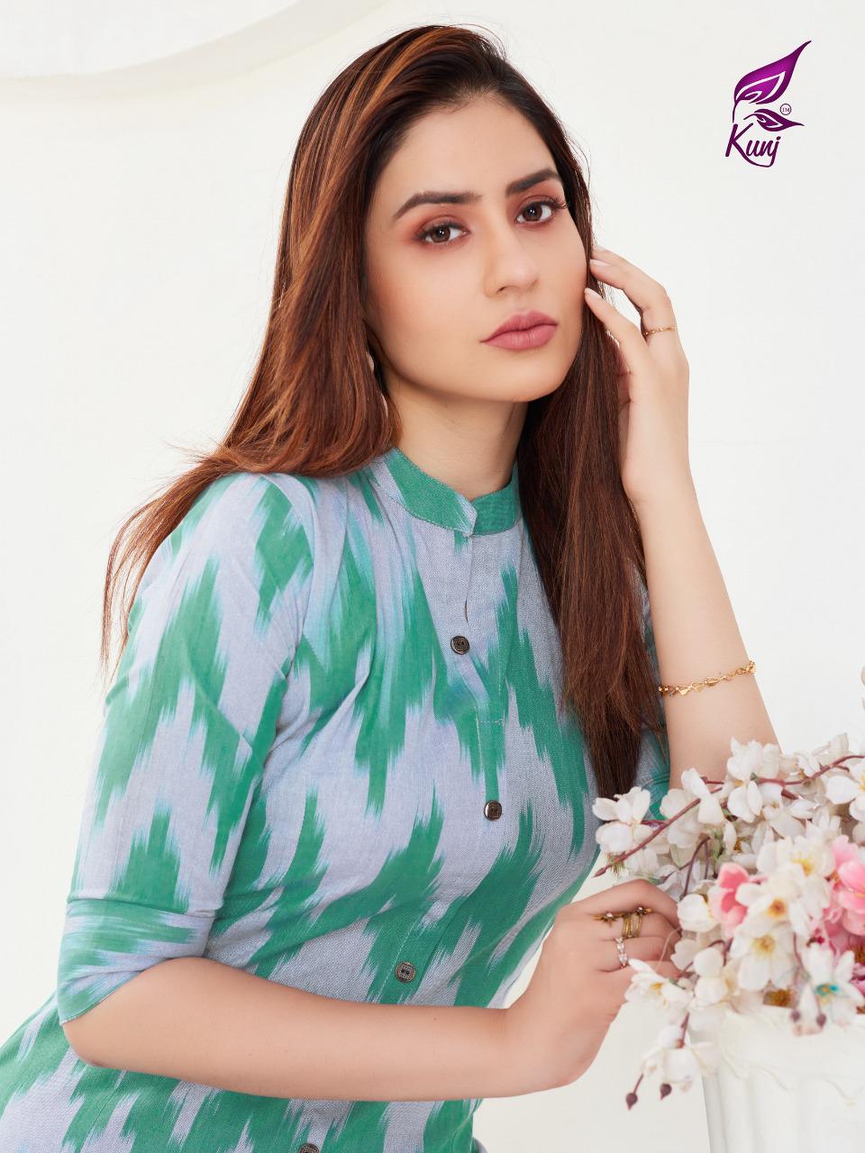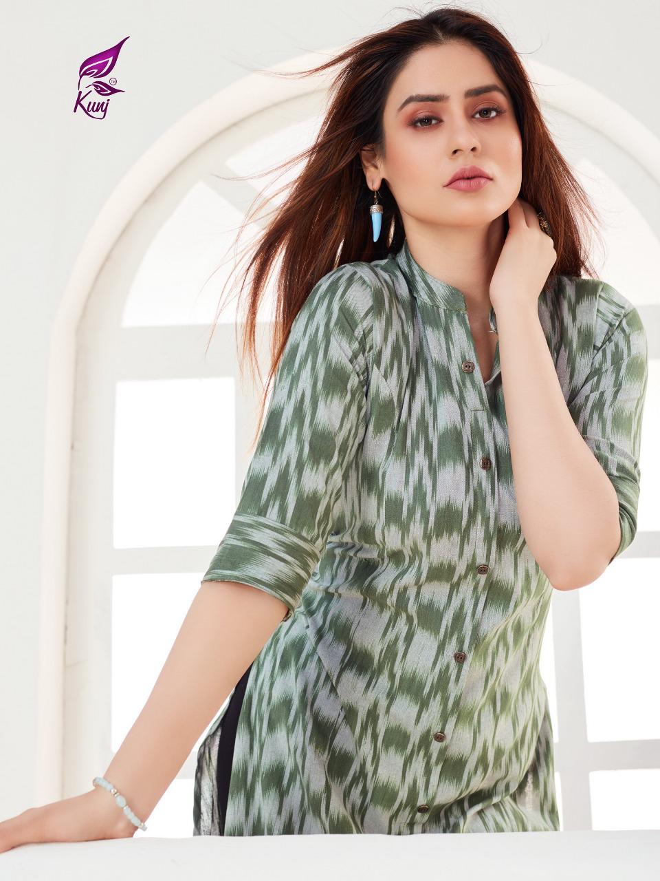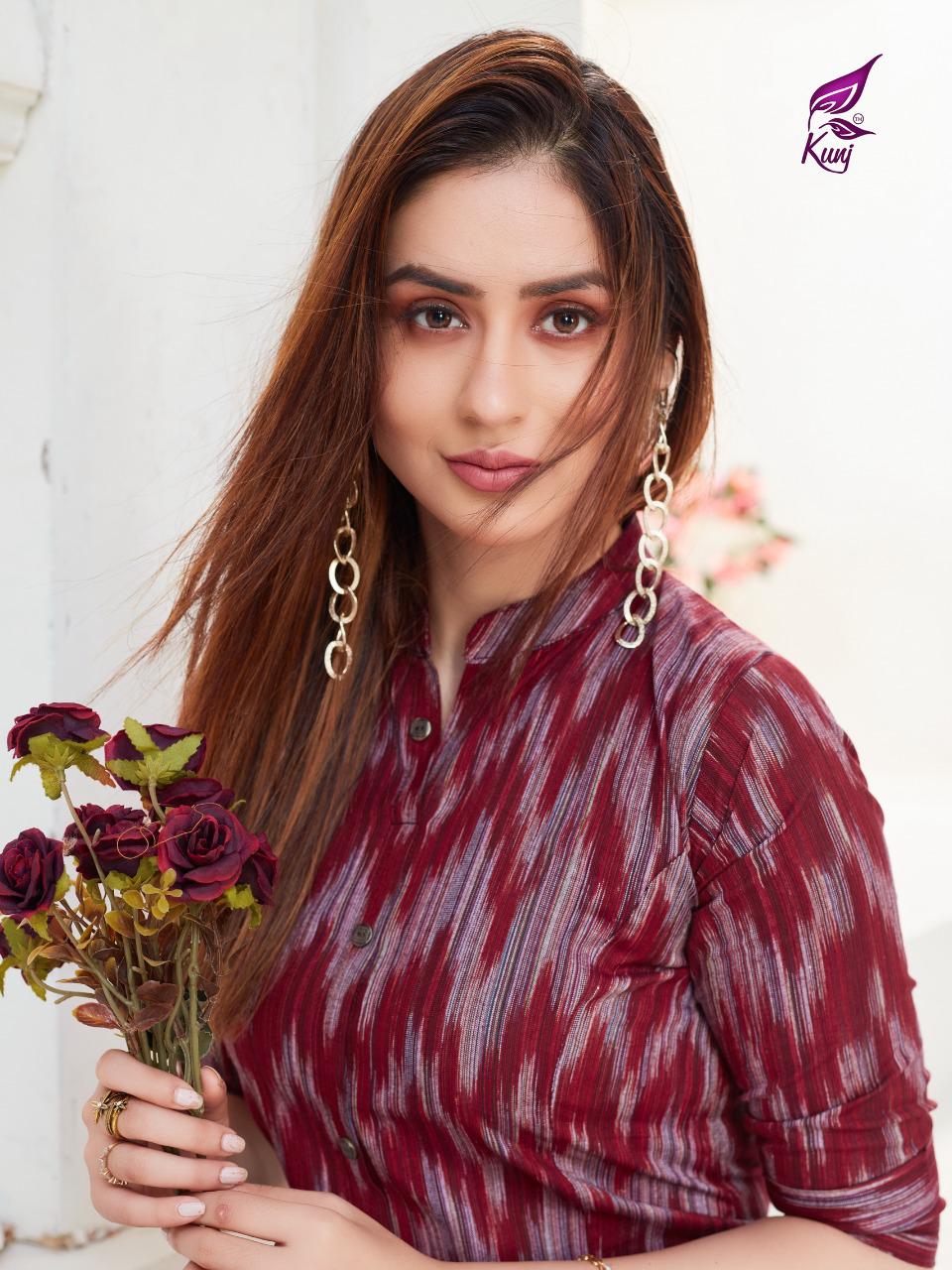 Kunj Rayon Ikki Vol 10 Rayon Ikkat Printed Long Fancy Formal Wear Exclusive Deisgner Kurtis