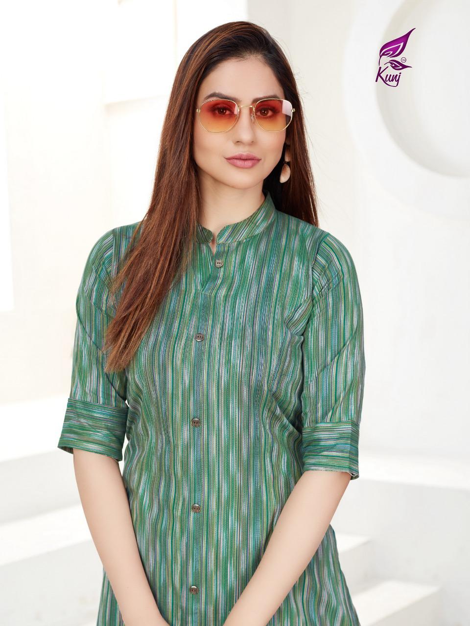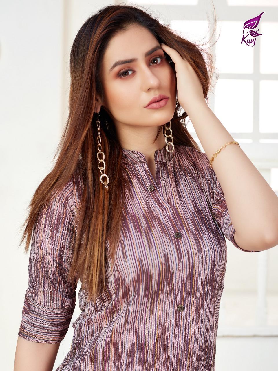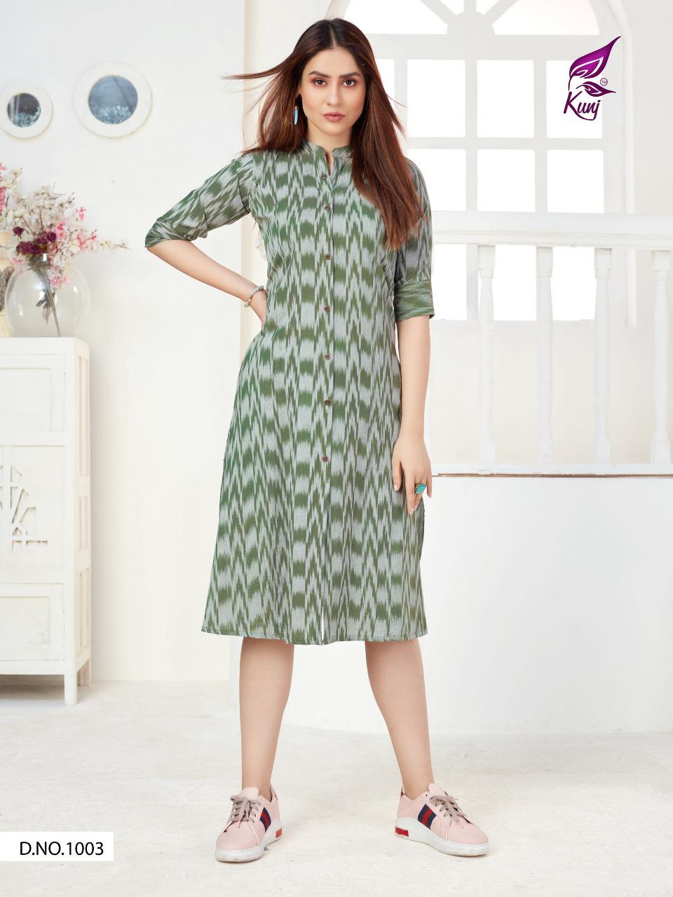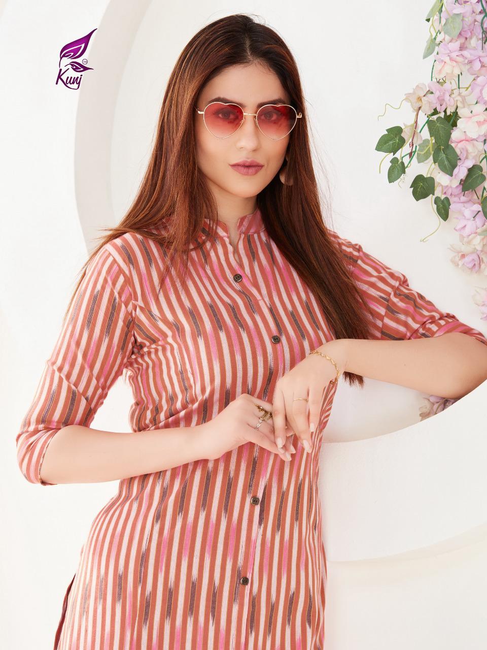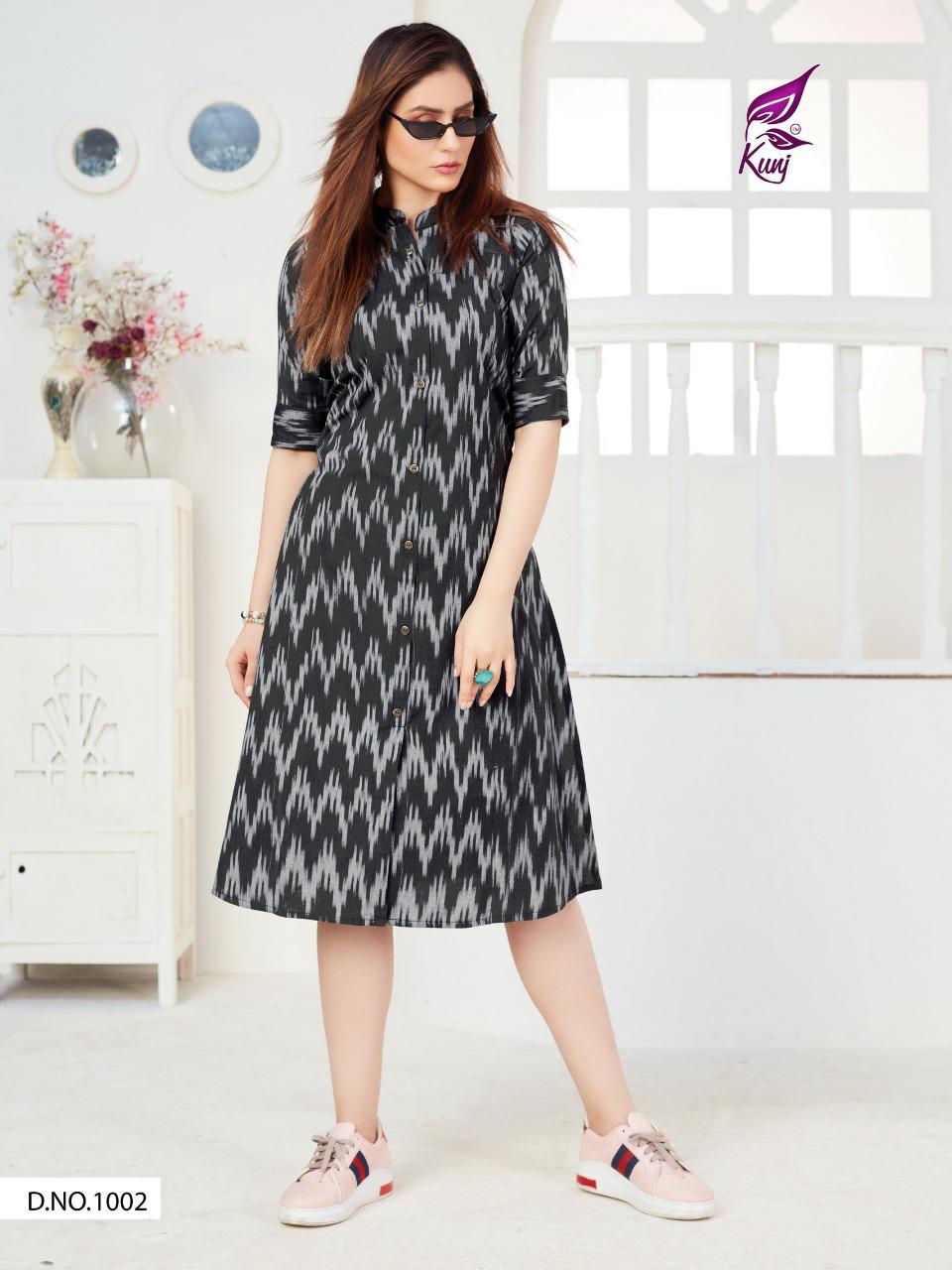 Kunj Rayon Ikki Vol 10 Rayon Ikkat Printed Long Fancy Formal Wear Exclusive Deisgner Kurtis