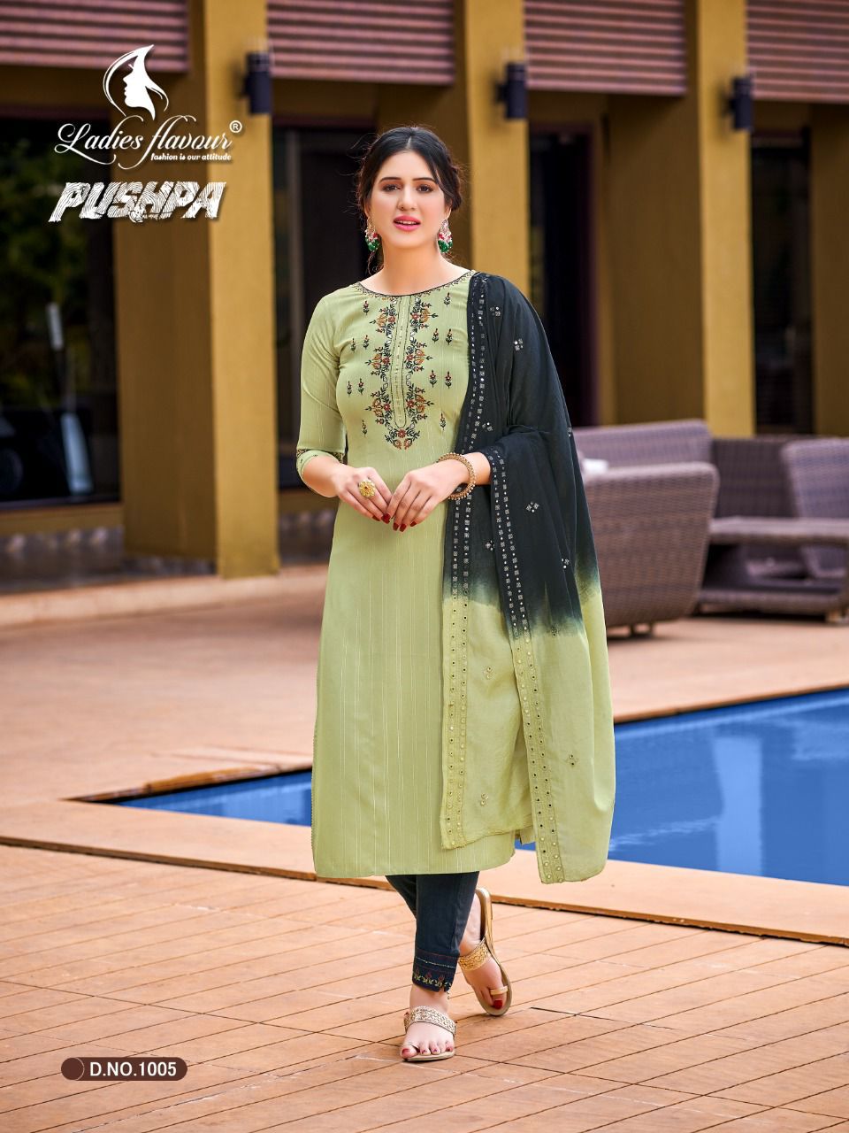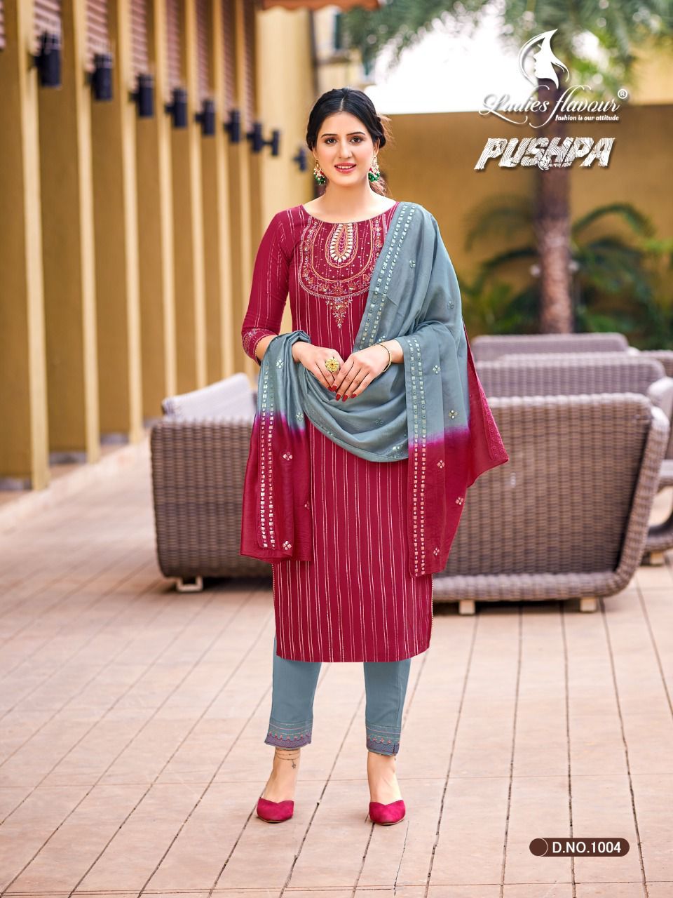 Fabric :- Bottom :- Cotton Slub Lycra With Embroidery Work Dupatta :- Pure Chanderi Viscose With Mirror Work(2.20 cut 36 panna) Size : M(38), L(40), XL(42), 2XL(44), 3XL(46) |