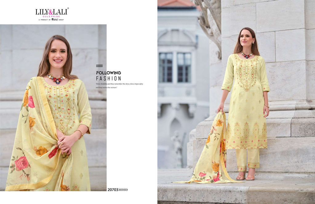 Lily And Lali Lajjo Silk Jacquard Designer Festival Wear Kurti Pant Dupatta Set