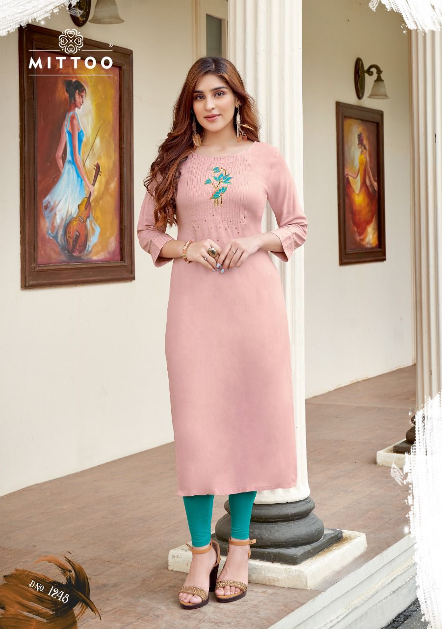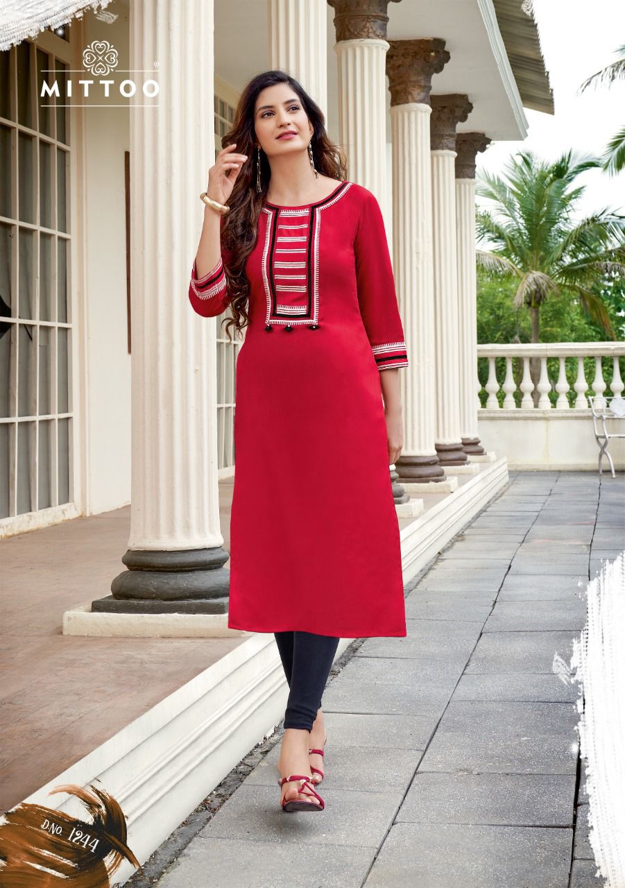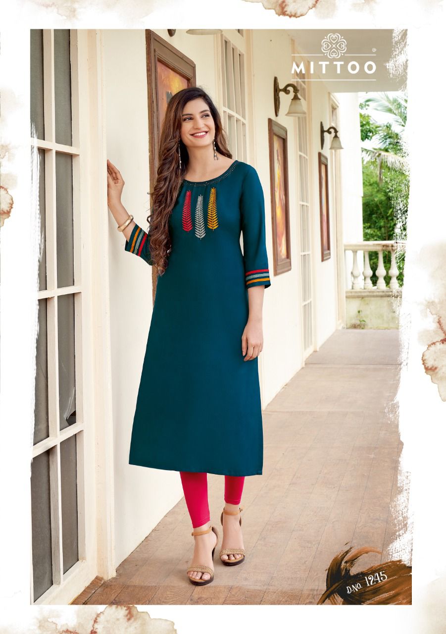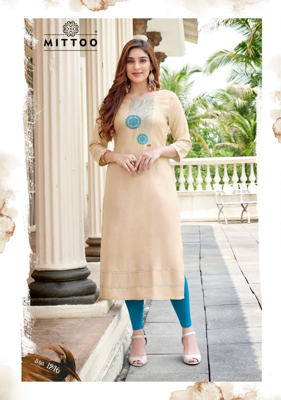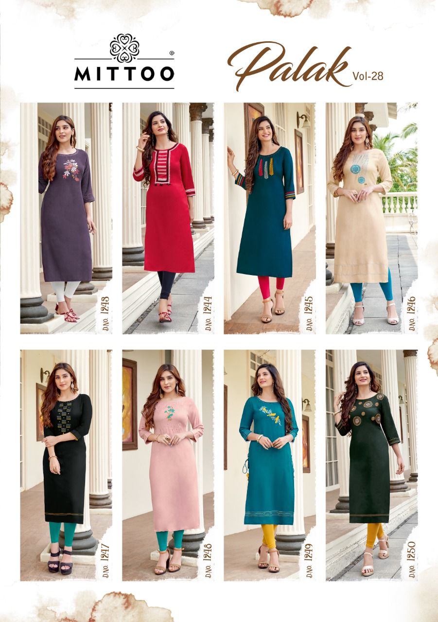 Brand Name : MITTOO Catalog : Palak Vol : 28 Design : 8 Fabric : 14kg Heavy Rayon Size : M(38), L(40), XL(42), XXL(44), XXXL(46) Rate : 445 / Pic + 5% GST |