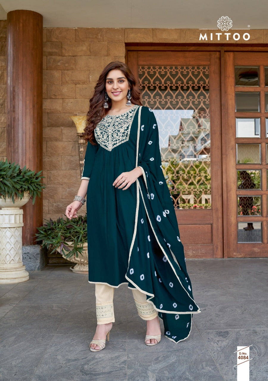 Mittoo Fashion Barkhaa Mull Cotton Long Anarkali Style Wedding Wear Kurtis With Heavy Embroidery Work