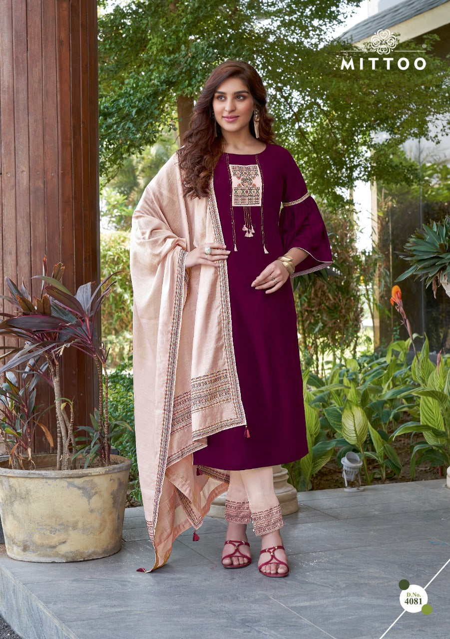 Top : Havey Rayon Pant : Printed Cotton Slub Lycra Dupatta : Banarasi Viscose Printed Size : M(38), L(40), XL(42), XXL(44), 3XL(46) Rate : 895/ Pic + 5% GST |