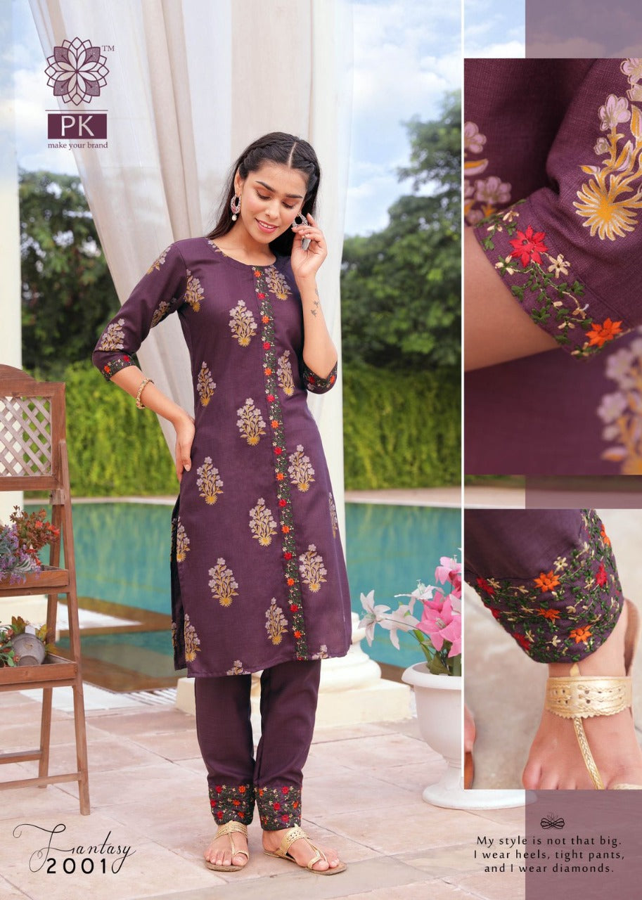 Pk Fashion Fantasy Vol 2 Cotton Printed Readymade Casual Wear Fancy Kurti With Bottom
