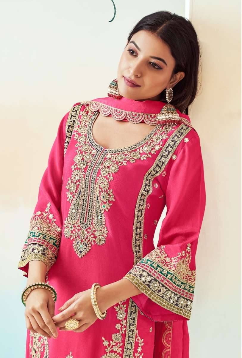 Top: Heavy Chinon With Heavy Embroidary Work (With Jerkan &Mirror Work). Bottom : Heavy Premium Chinon ( With Mirror Work ) Dupatta: Heavy Premium Chinon With Heavy Embroidary Four Side Work 5 Pcs |