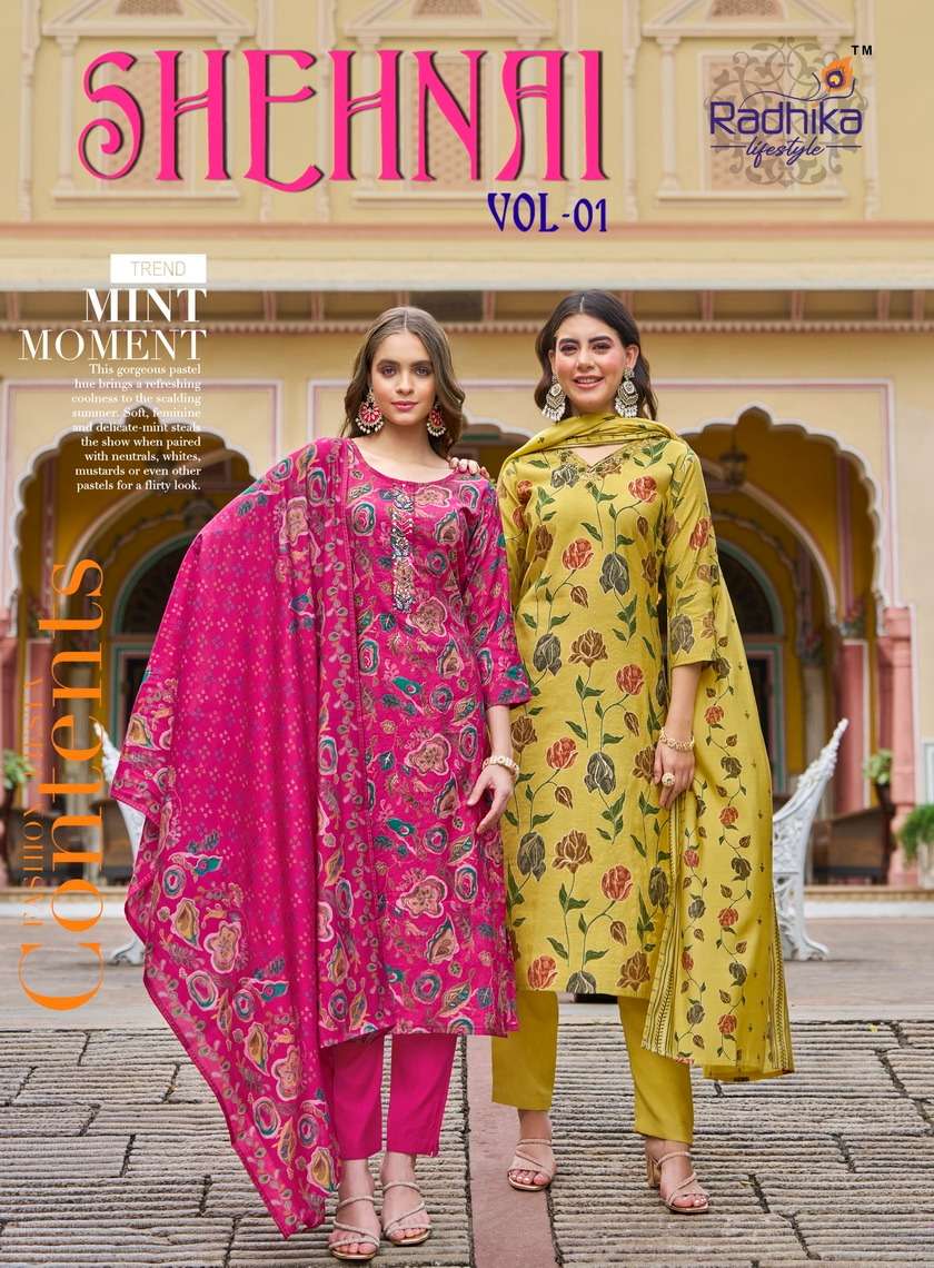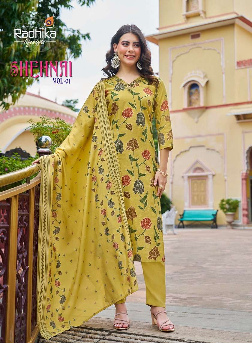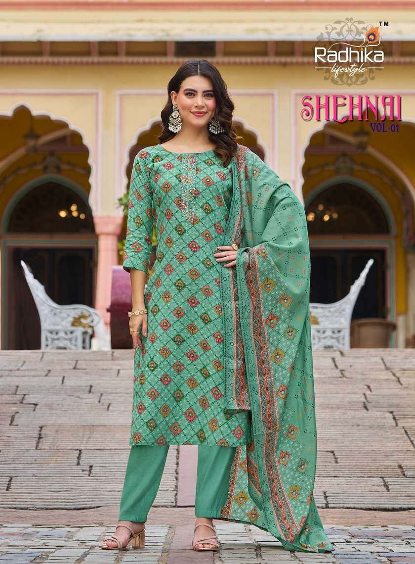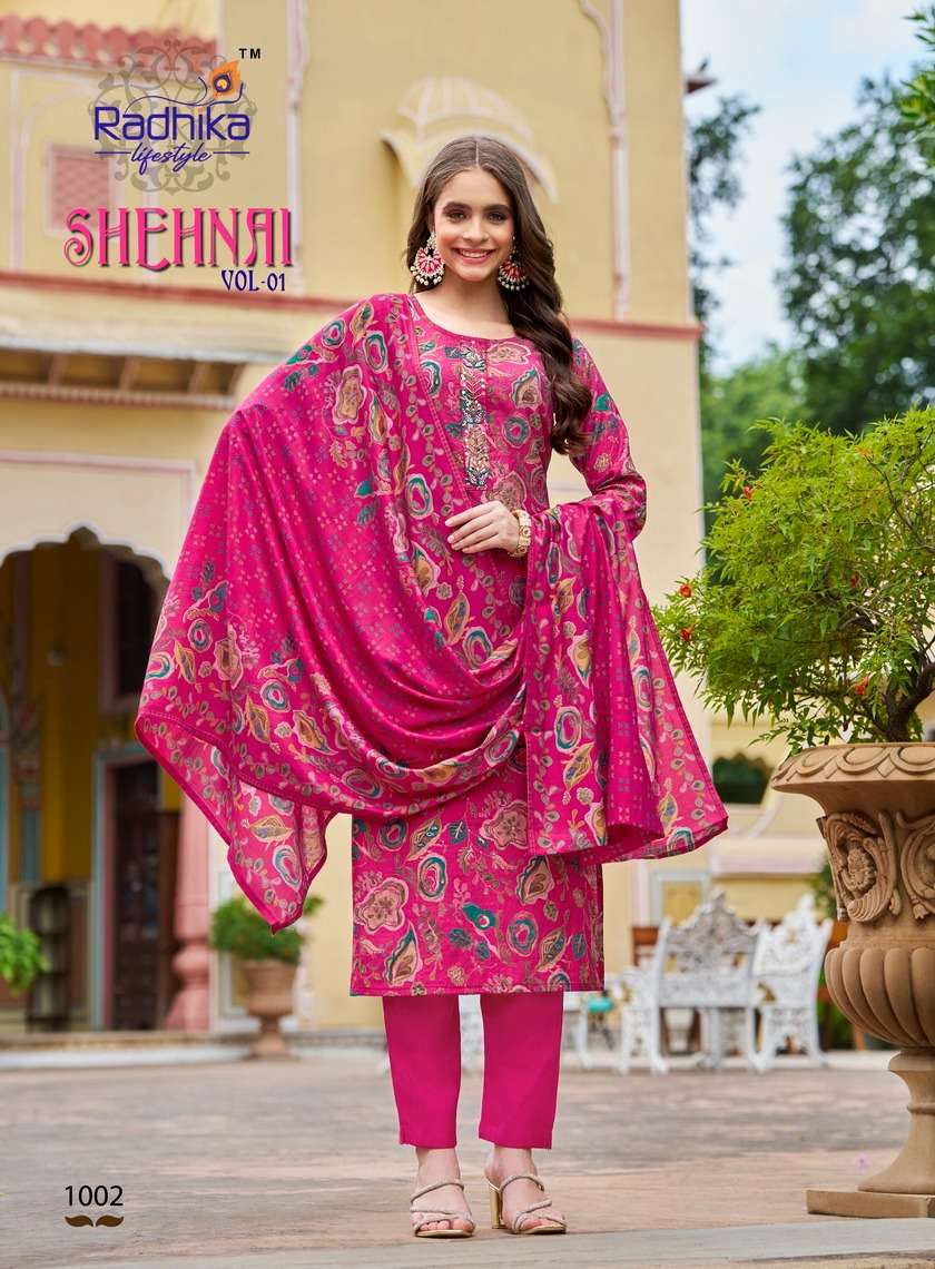 Radhika Lifestyle Shehnai Vol 1 Modal Silk Hand Work Kurti Pant Dupatta Set
