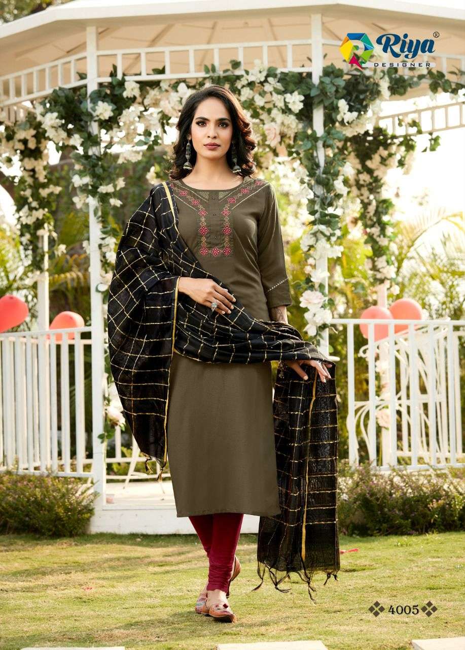 Riya Designer Launch Inayat Vol 4 Reyon With Embrodairy Work Kurti With Banarasi Duptta