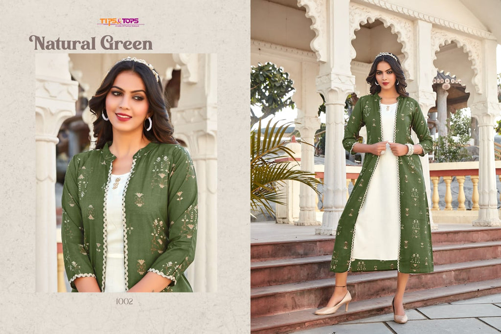 Fabric Details : Fabric In Jacket : Viscose Chanderi Foil Print Sleeves Type : 3/4th |