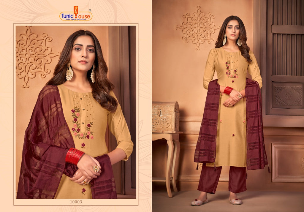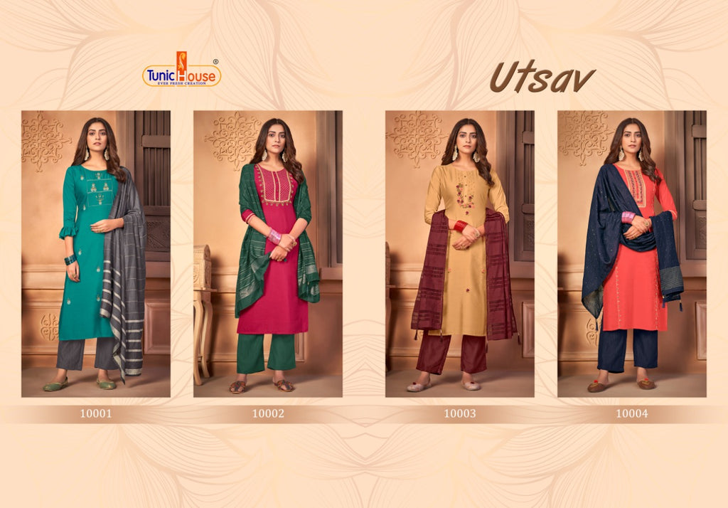 Tunic House Utsav Fancy Silk Stylish Party Wear Kurtis With Set Of Dupatta & Bottom