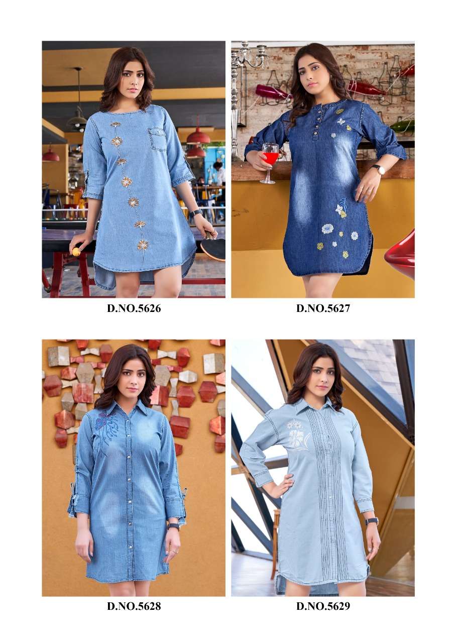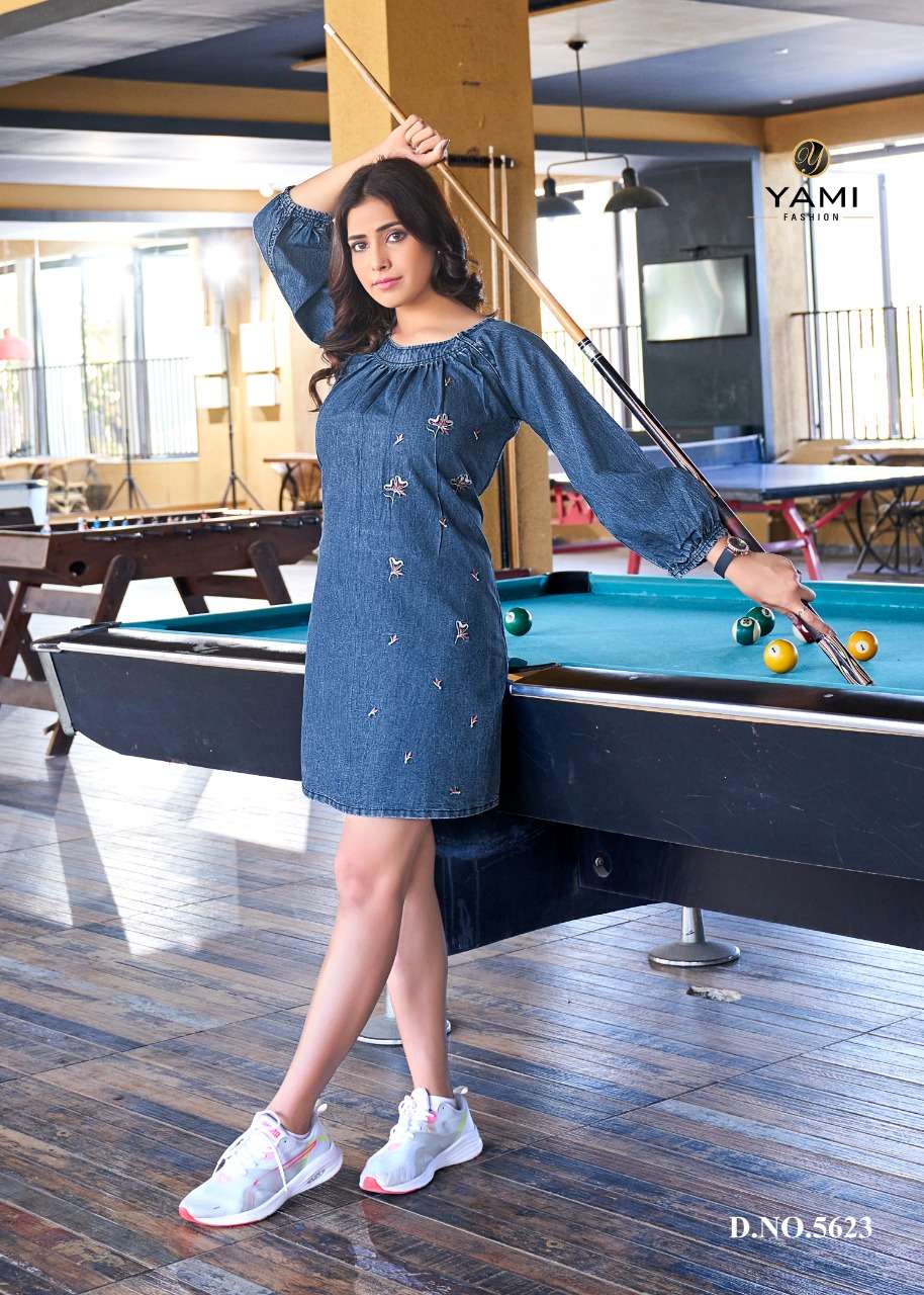 Yami Fashion Vibes Denim Machine Embroidery Fancy Tunics Tops