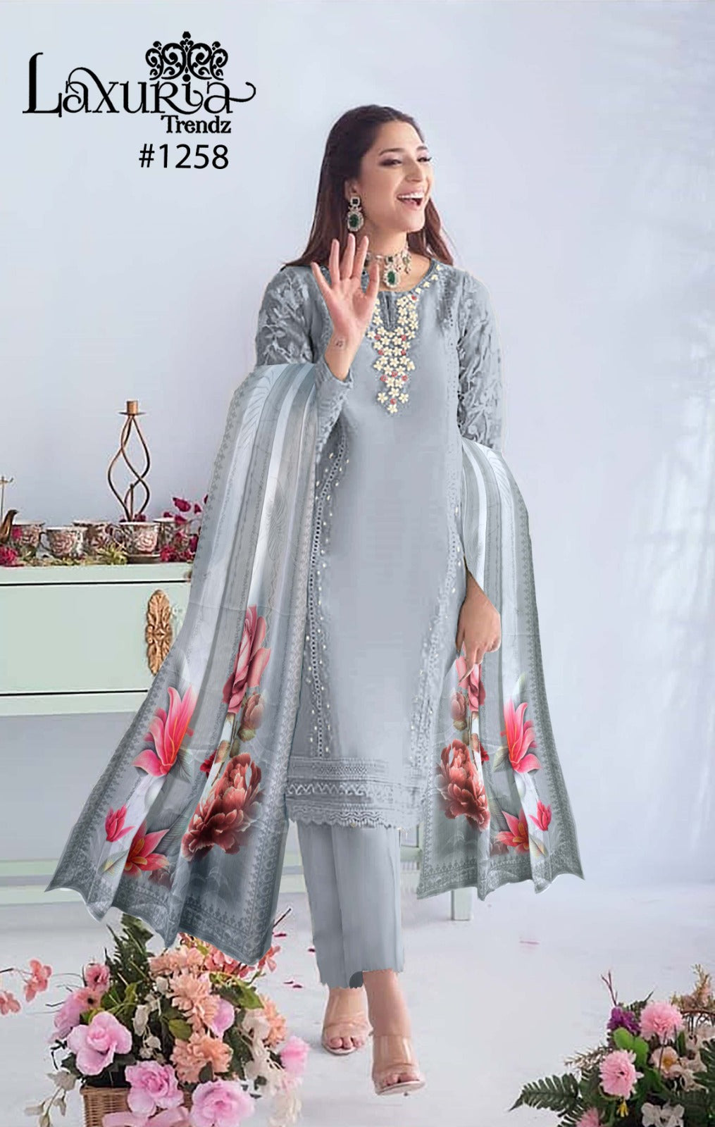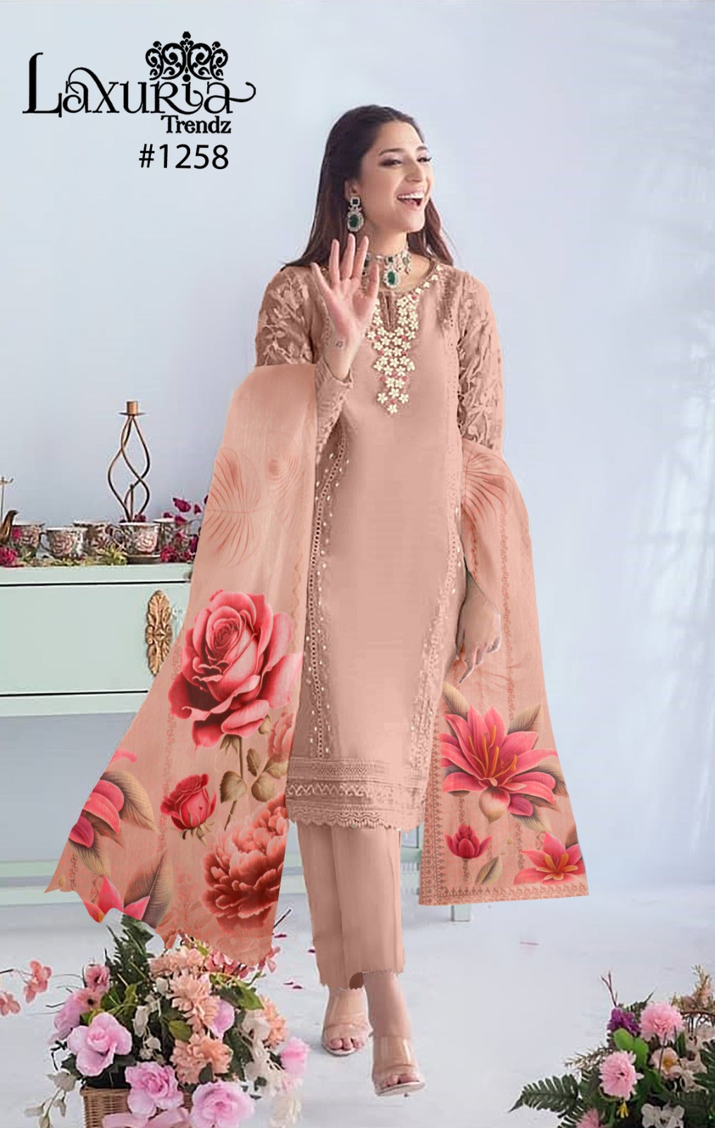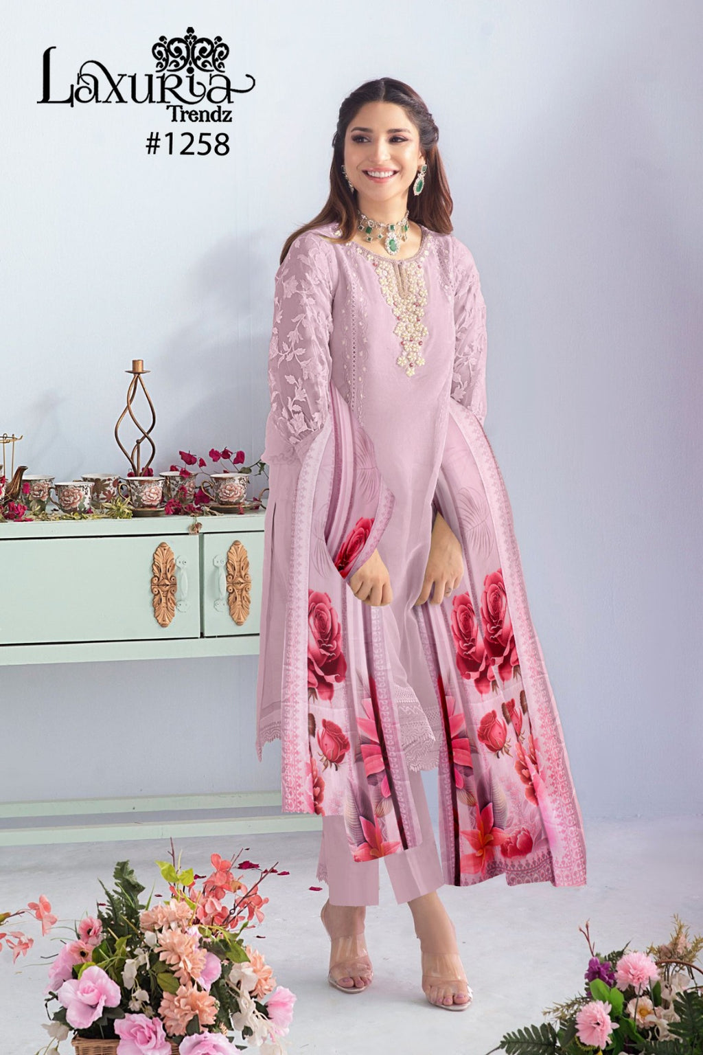 Top:- Organza Duptta :- Digital Print Pant :- Cotton Strachble |