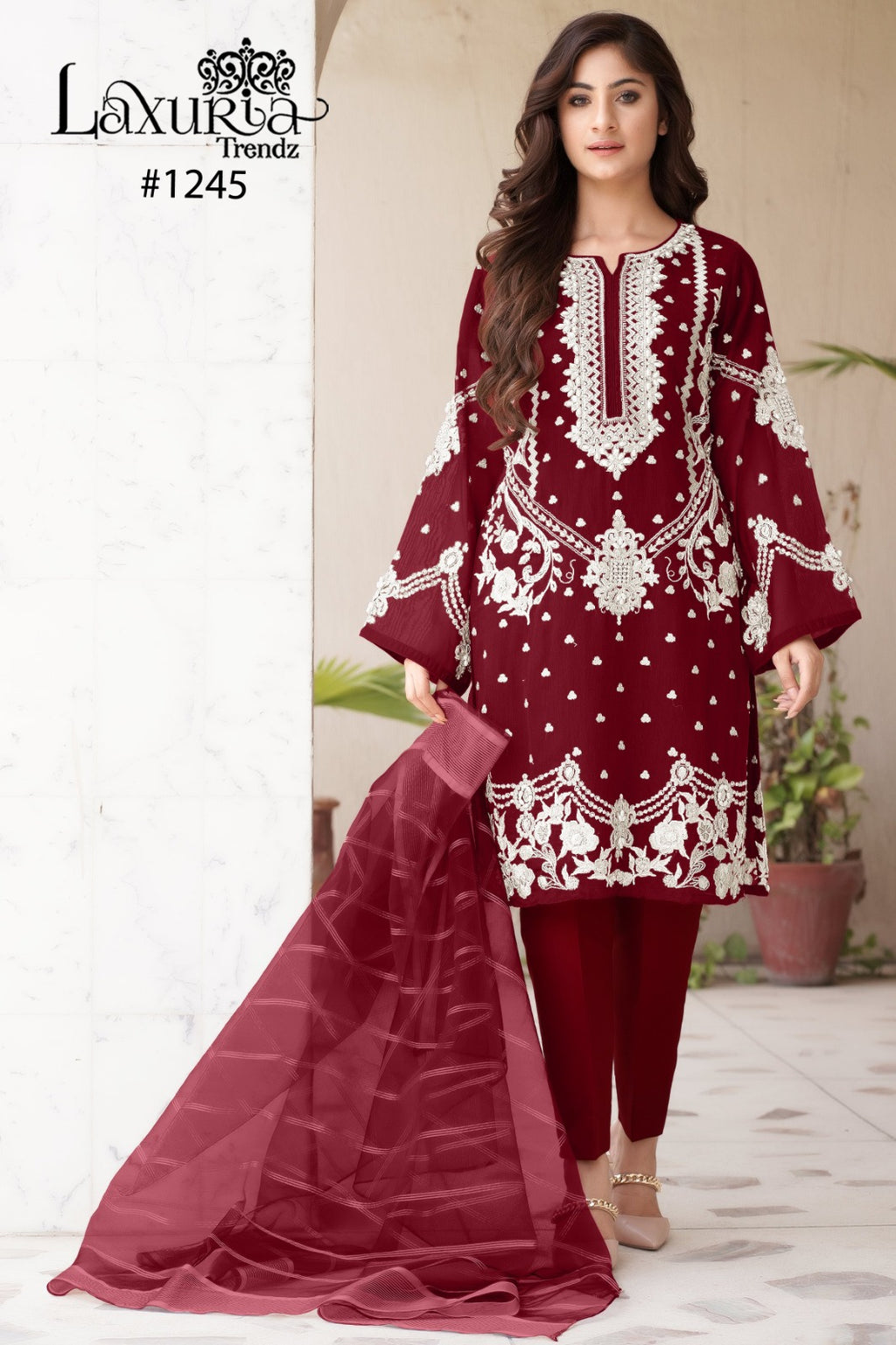 Laxuria Trrendz Dno 1245 Fox Georgette Handwork Designer Pakistani Pret Kurti