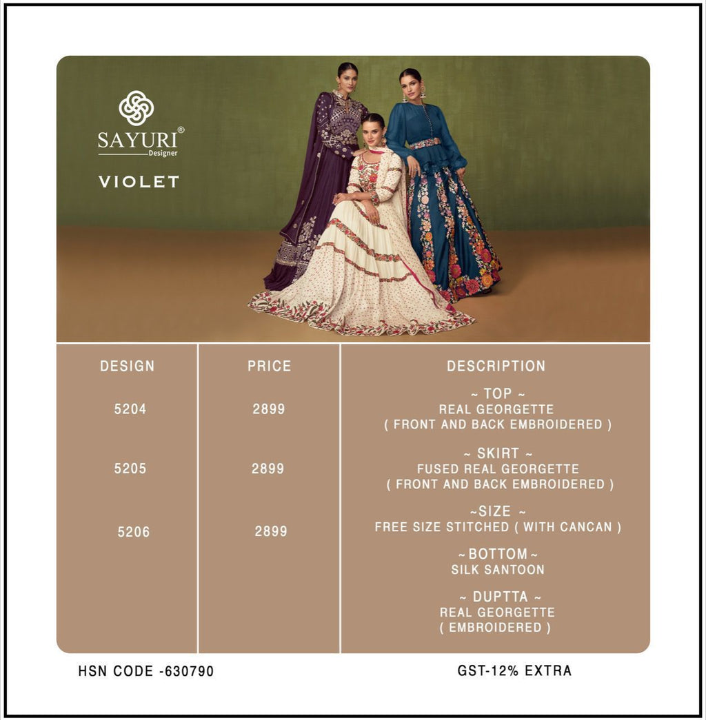 Sayuri Violet Georgette with Heavy Embroidery Work Stylish Designer Wedding Wear Lehenga