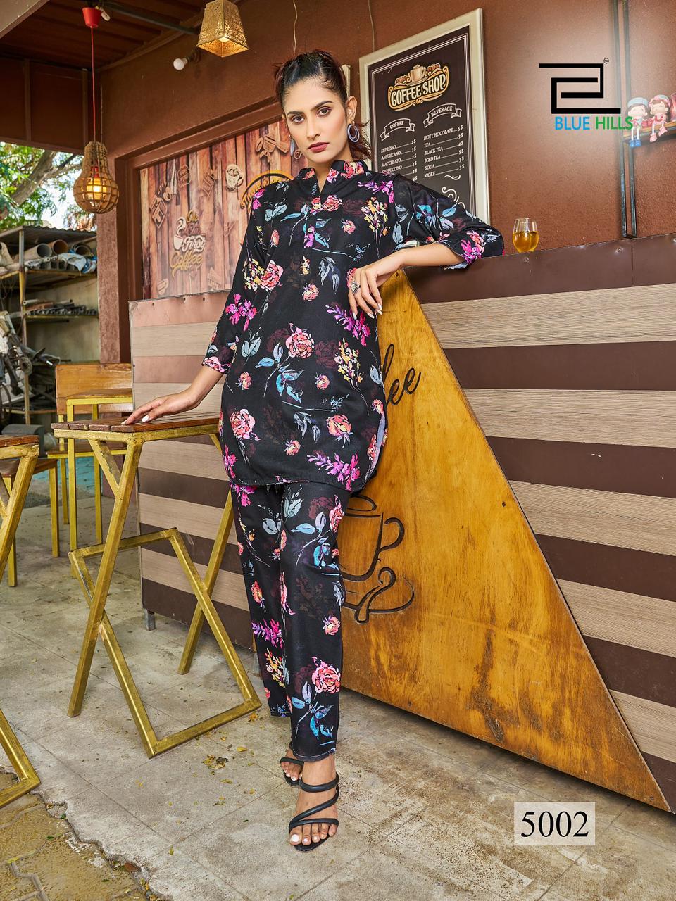 Blue Hills Airport Look Vol 5 Linen Digital Print Fancy Top With Bottom Cord Sets
