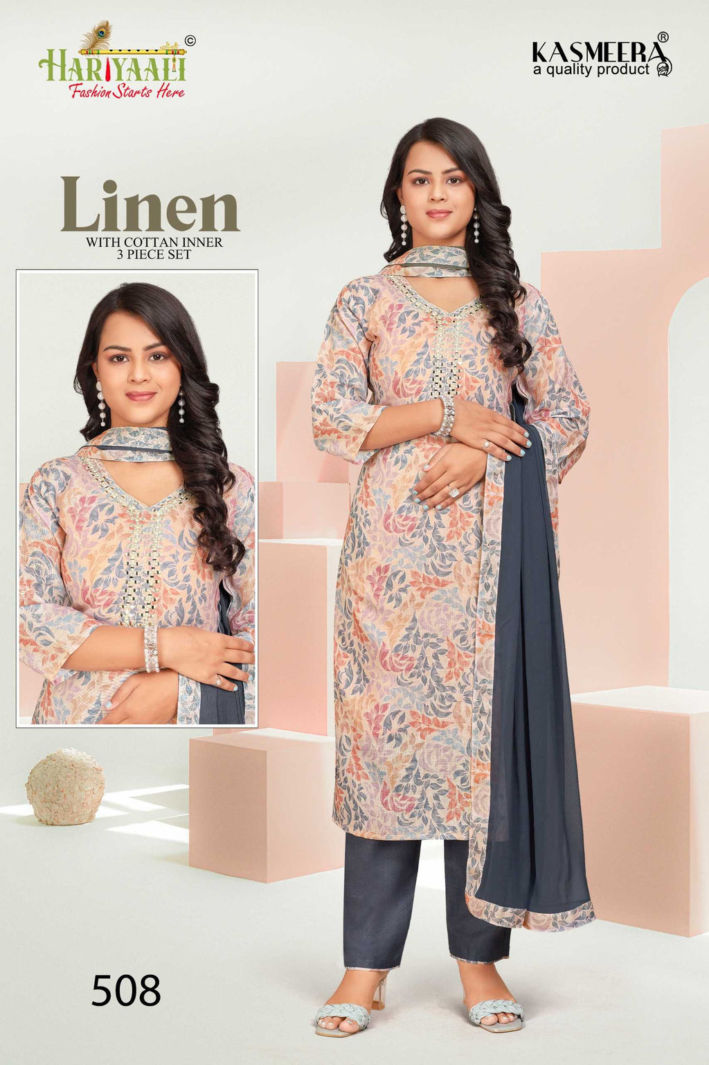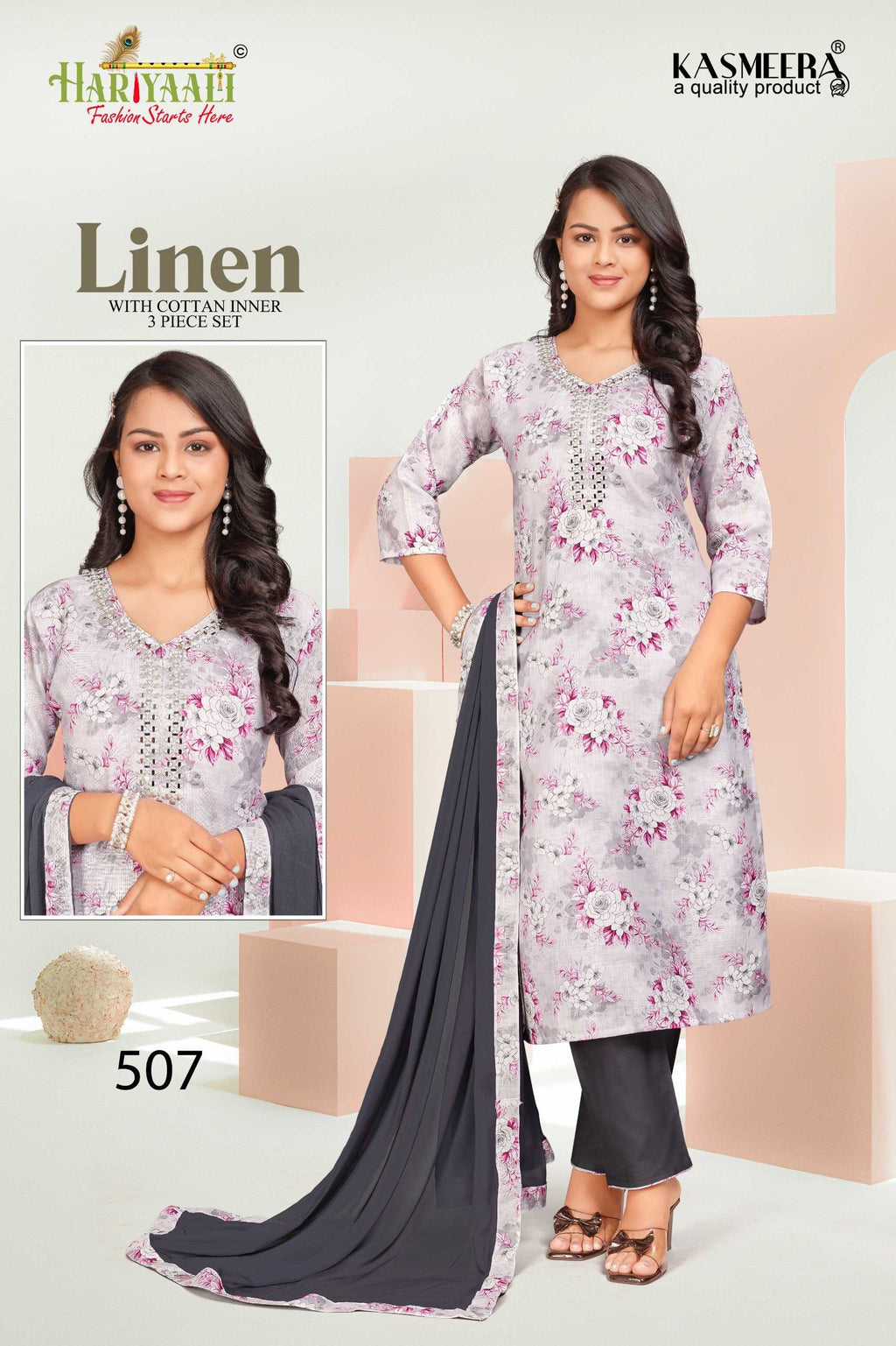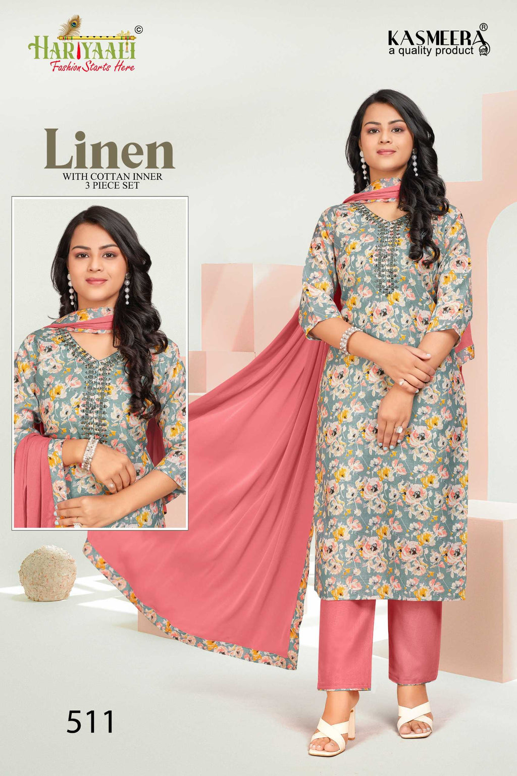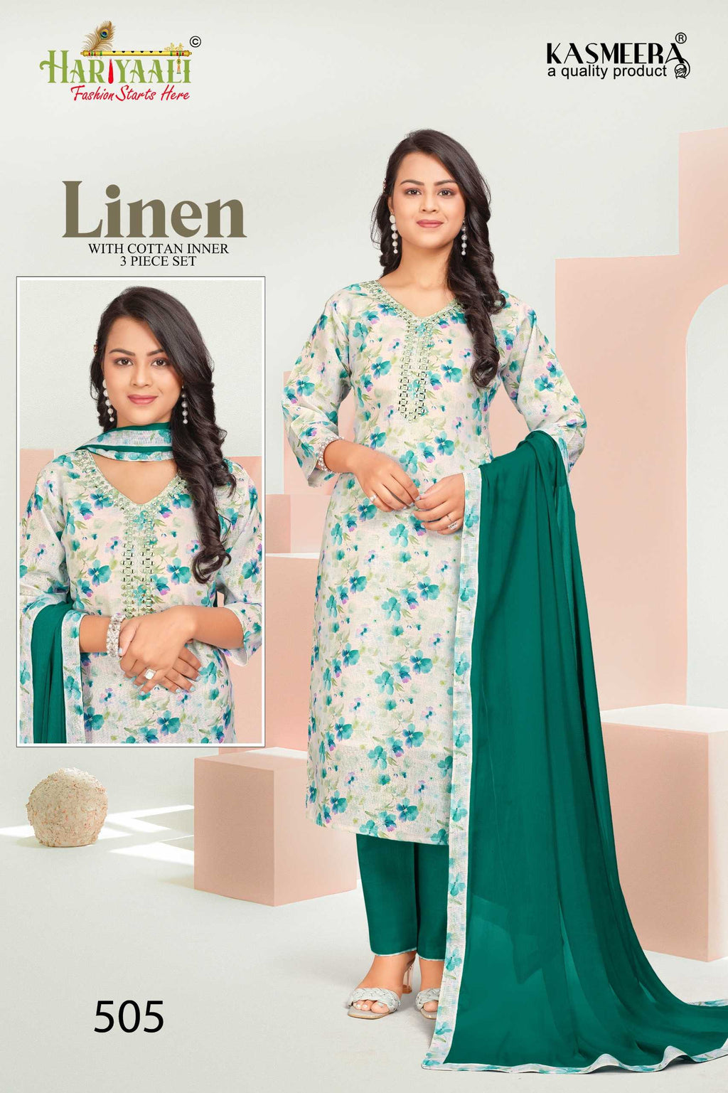 Hariyali Linen Vol 5 Linen Digital Print With Real Mirror Work Combo Set Of Pret Kurti