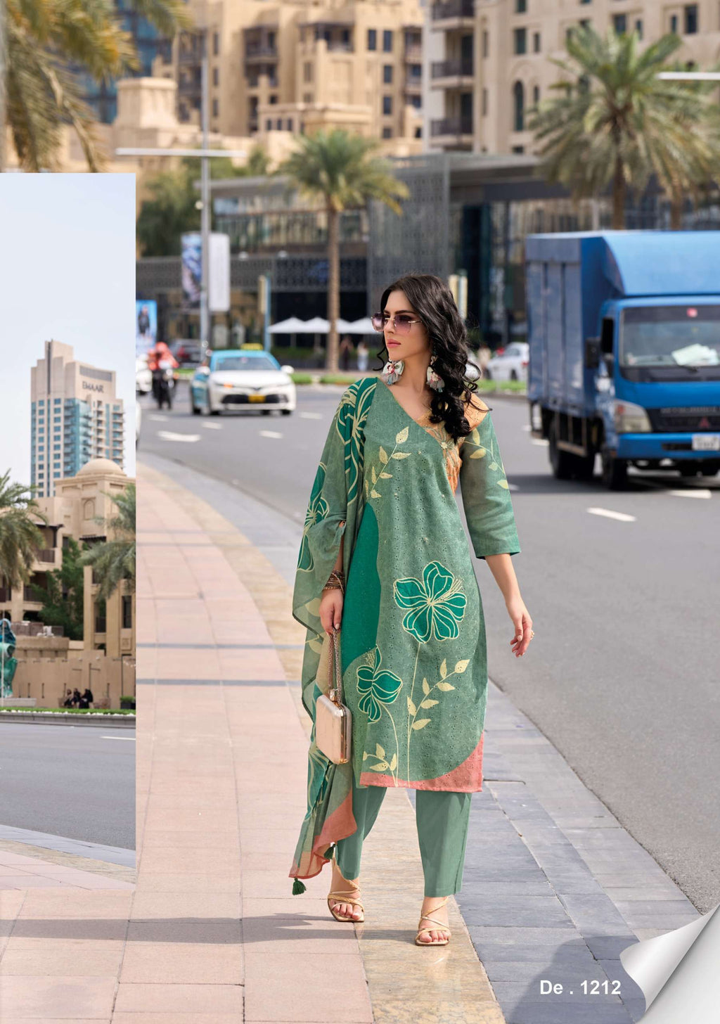Top - Borer Schiffli Work On Linen Fabric With Handwork & Pure Cotton Inner Bottom- Pure Cambric Bottom With Pocket Dupatta - Digital Print On Viscose Mal With Tessels Note- |