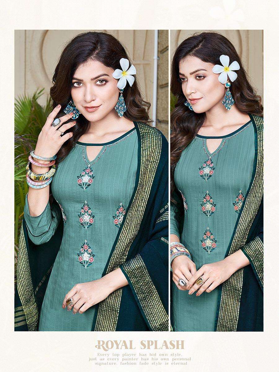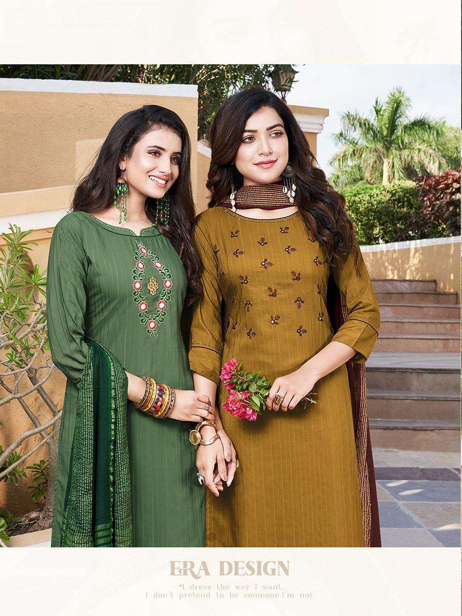 Top Fabrics - chinon Dobby weaving silk With Handwork & mirror Embroidery work 👖 Bottom fabric- chinon silk With embroidery work Duptta fabric- pure naylon viscose stripe (2.25 cut) 🧶🧵 Work : mirror & Embroidery 👚 Top Length ; 46 + |