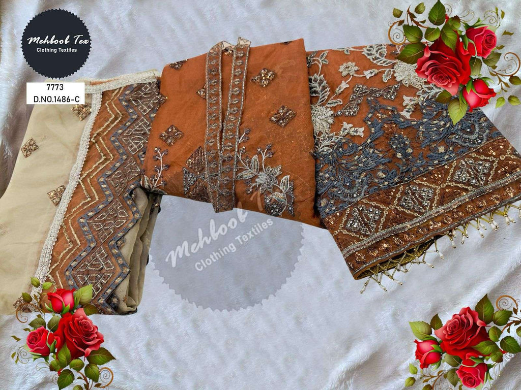 top: orgnza with embroidery work with hand work full havy hand work *in this desgin jarkan bottam: santoon |