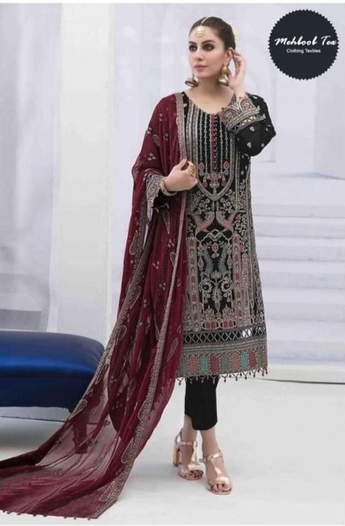 Top : GEORGETTE WITH HEAVY EMBROIDERED Bottom :SANTOON Dupatta : fox jorjet WITH HEAVY EMBROIDERED INNER :- SANTOON |