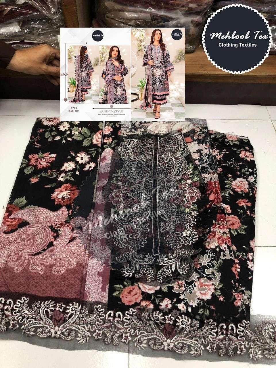 Mehboob Tex Design No 1261 Pure Cotton Print Patch Embroidery Fancy Salwar Kameez