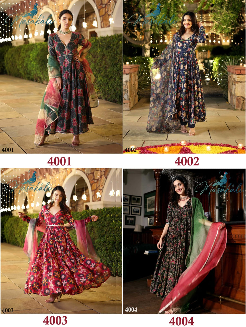Mf Masakali Vol 4 Muslin Silk Digital Printed Casual Wear Gown With Pant