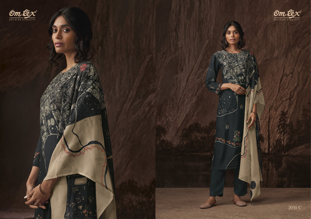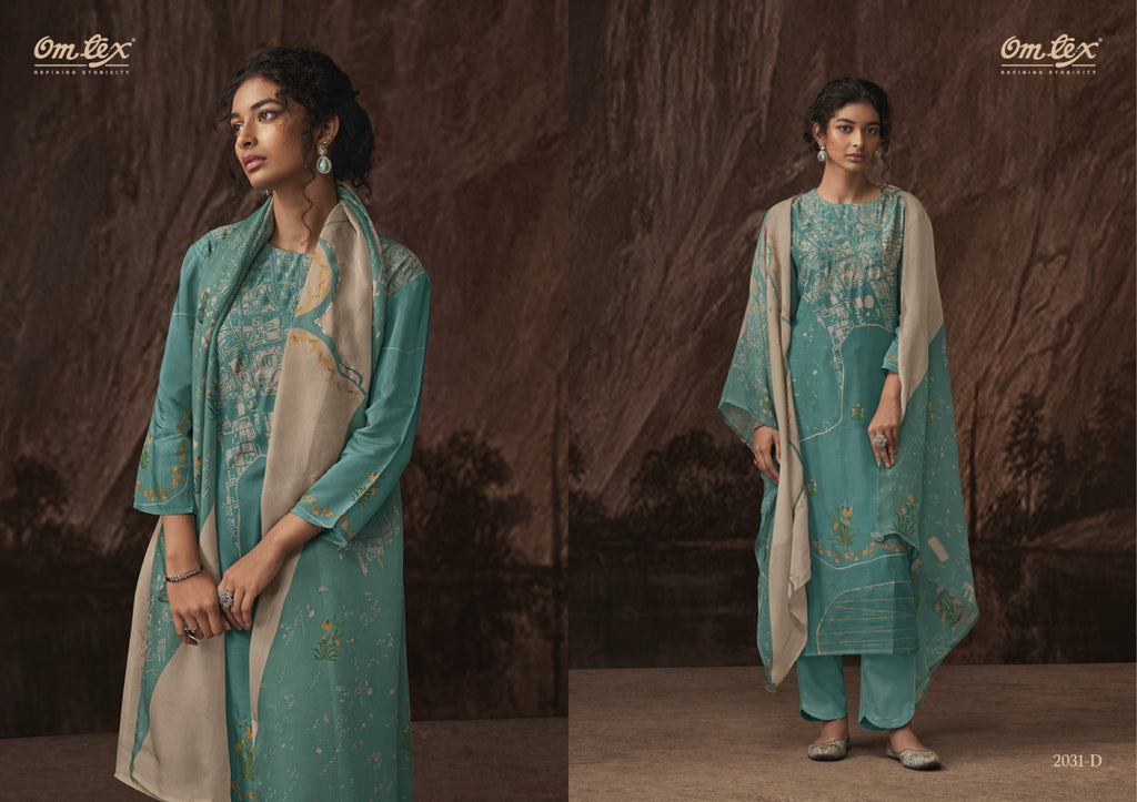 Omtex Nirja Digital Print Muslin With Embroidery Designer Traditional Wear Suits