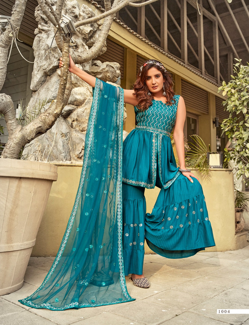 TOP :- SILK BASE WITH EMBROIDERY SEQUENCE WORK & INNER BOTTOM :- SILK BASE WITH EMBROIDERY SEQUENCE WORK DUPATTA :- MONO NET WITH EMBROIDERY SEQUENCE WORK BORDER |